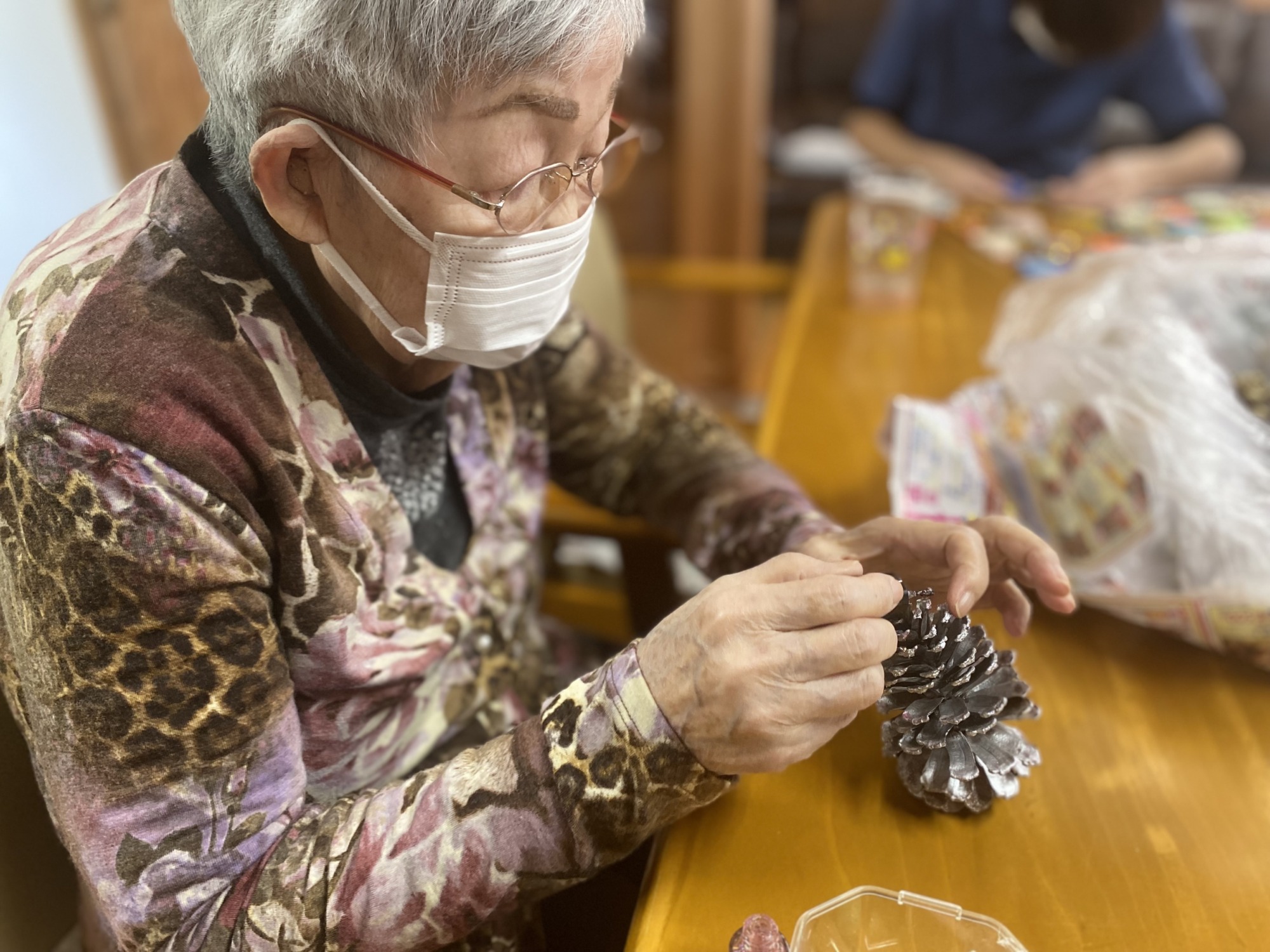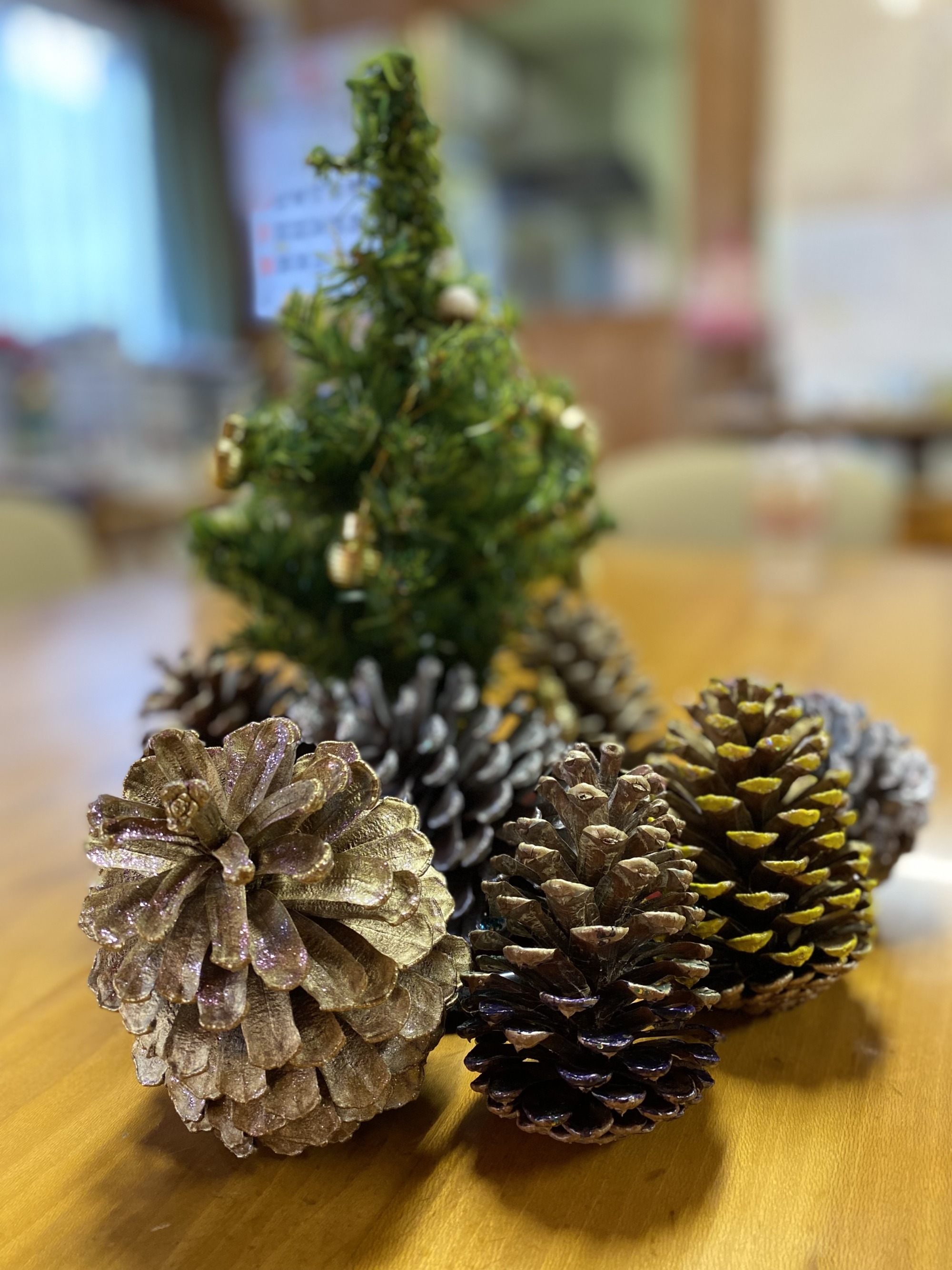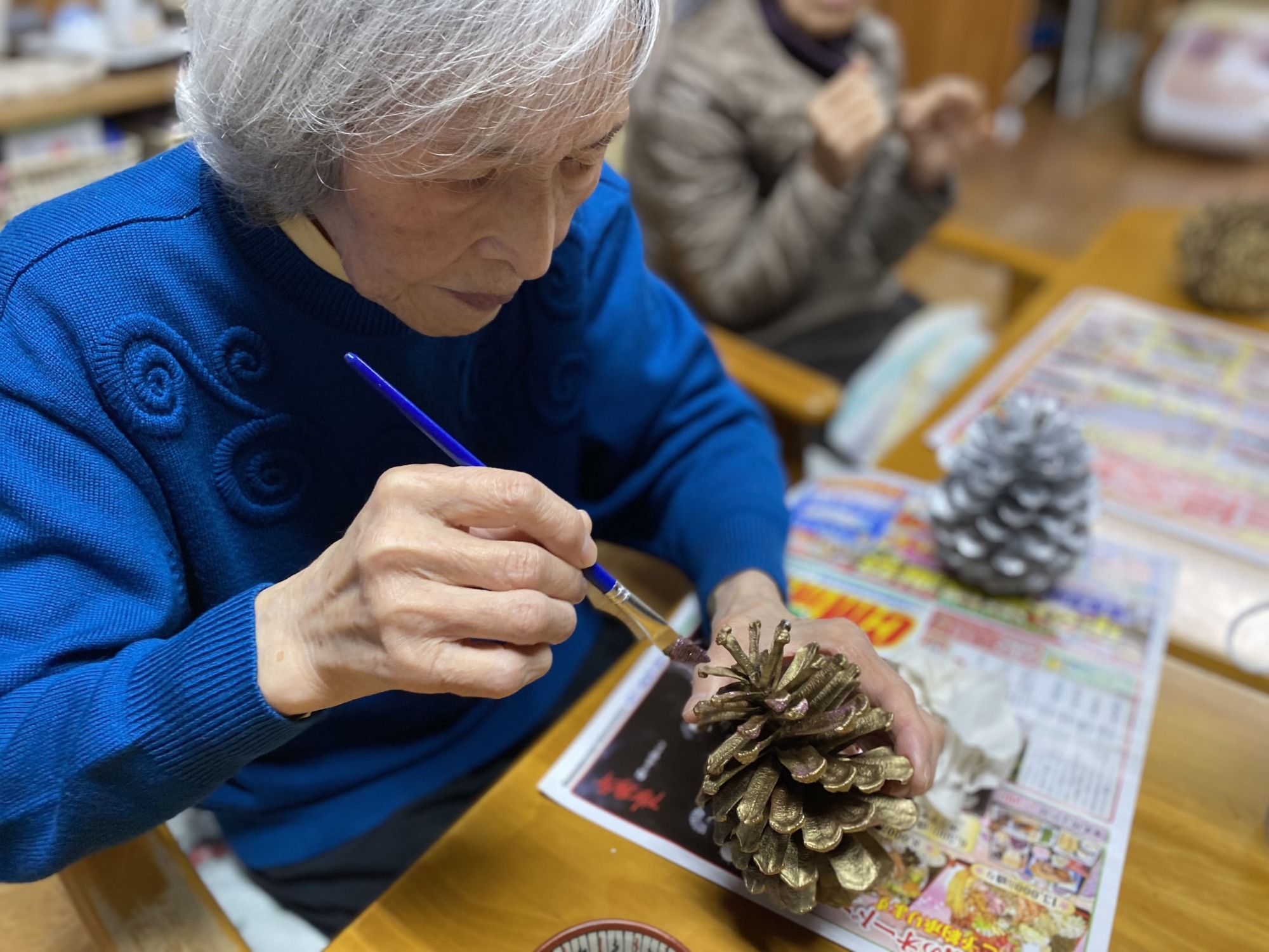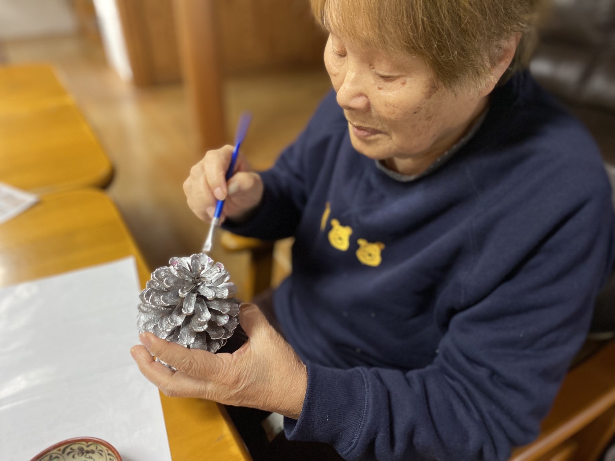 お次は松ぼっくりに色付けをしています。