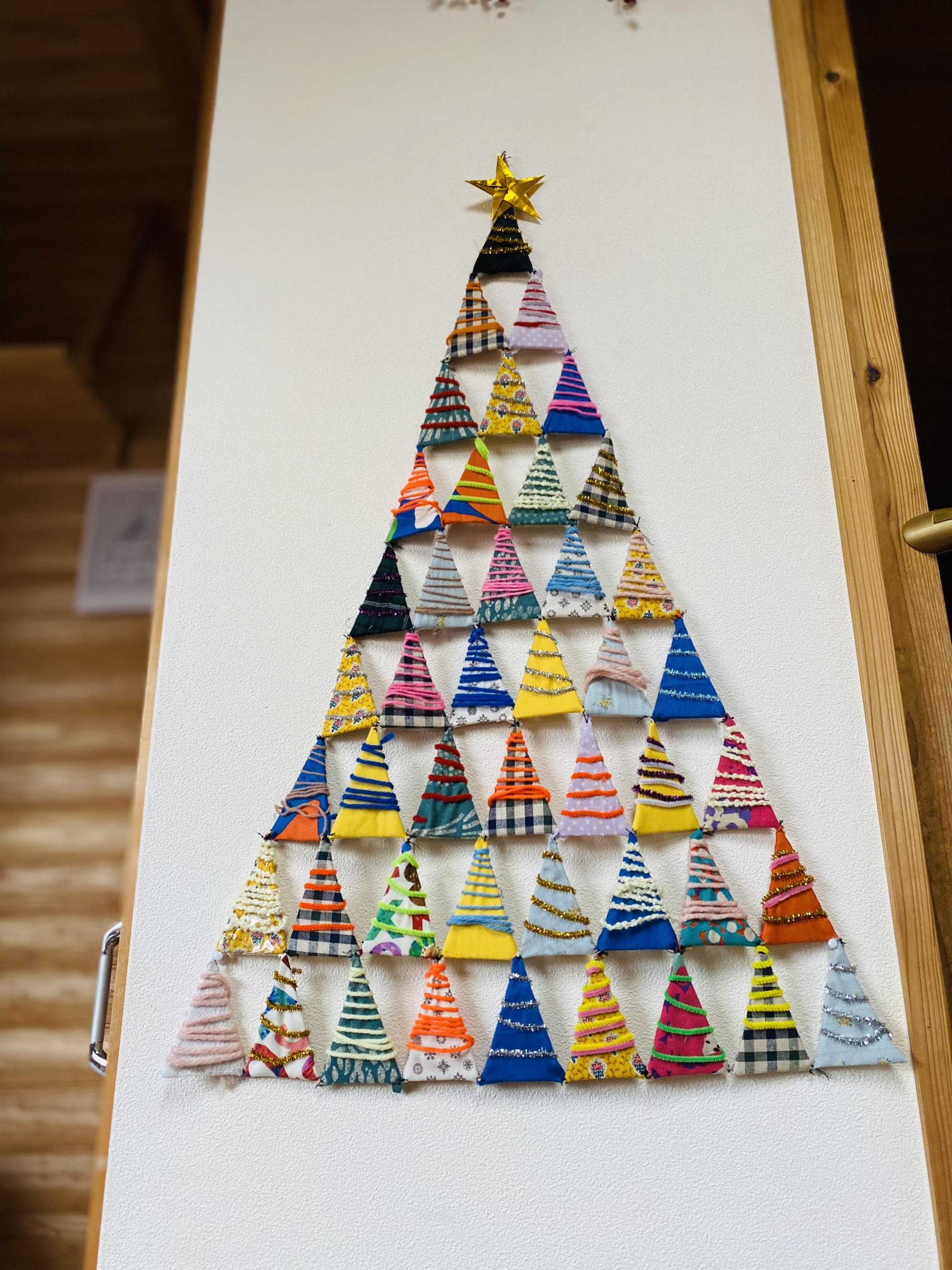 今年は玄関から手作り壁掛けツリーのお出迎えです。