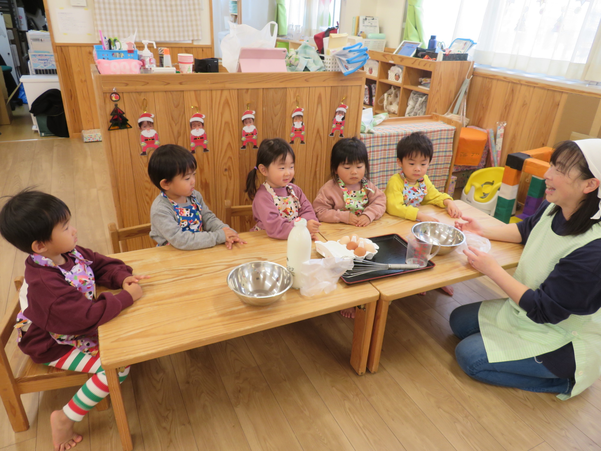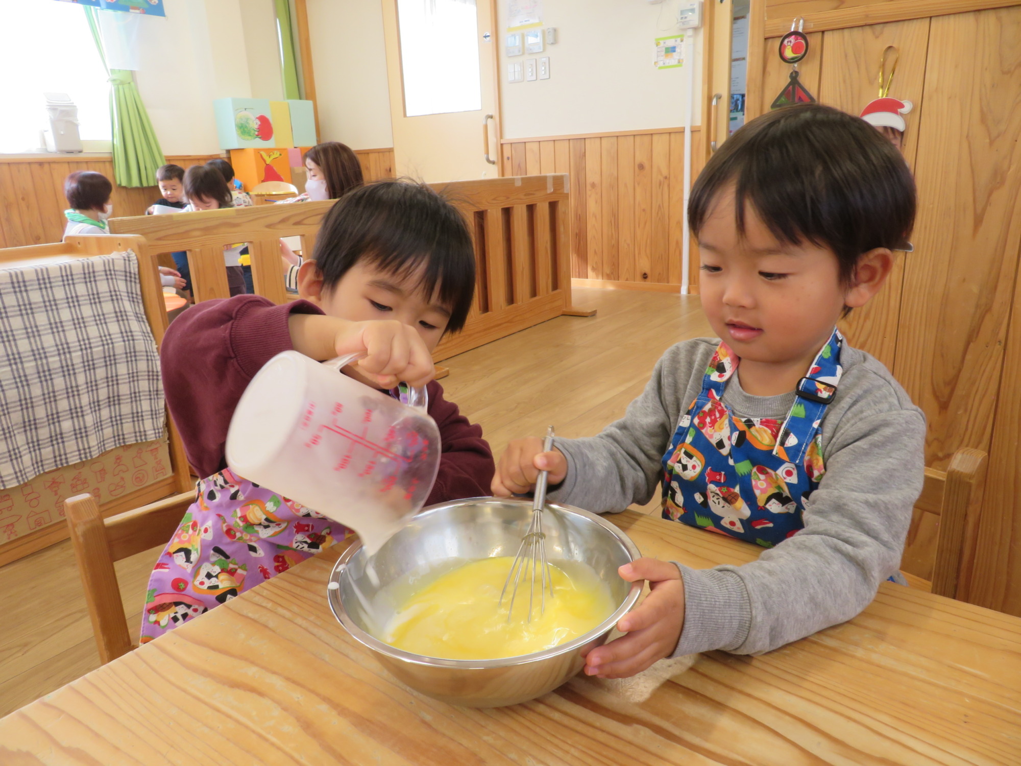 先生の話をしっかりと聞いて材料を入れていきます❕✨(≧▽≦)