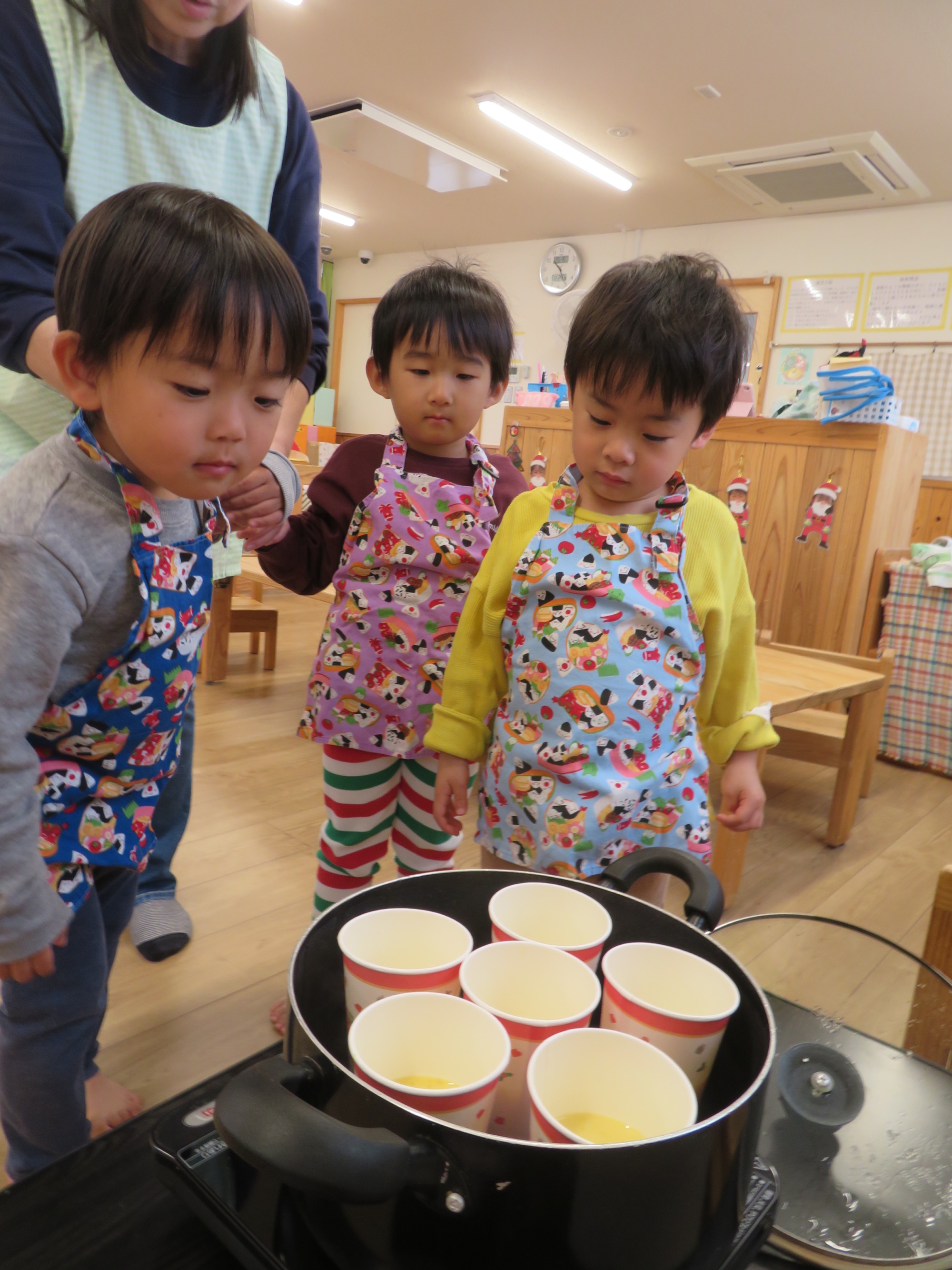 ぐつぐつしている様子を先生と一緒に見守ります🎶