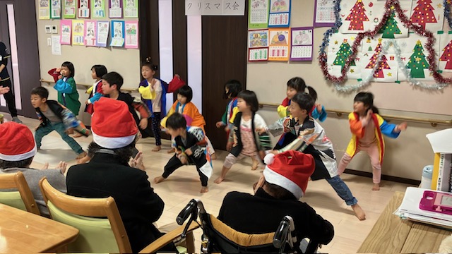 12/23クリスマス会、家族会を開催しました(*^-^*)                                 たからじま保育園園児によるソーラン節、クリスマス曲の合奏、合唱など家族の方といっそに盛り上がりました(^^♪