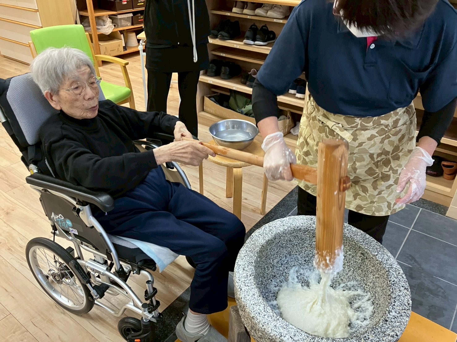 今年も変わらず皆様元気で新しい年を迎える事ができました。3日から始まったディは明るい笑顔のご利用者様と賑やかにいつもと変わりなく始まりました。年末のお餅つきからお正月らしいレクを楽しくお知らせします。