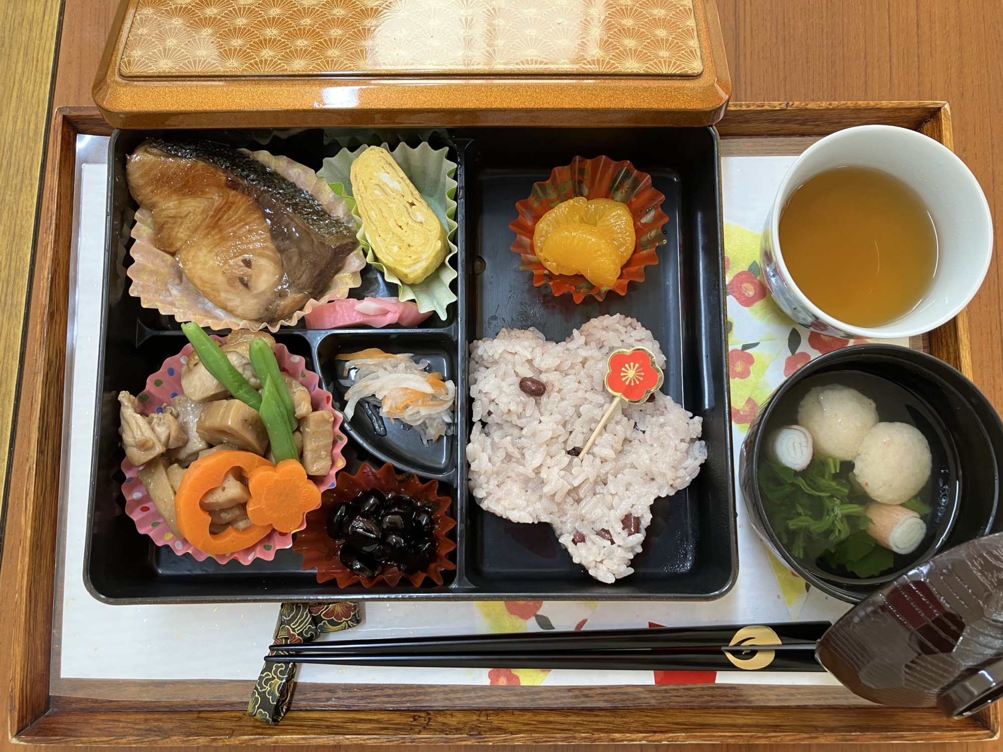 お祝御膳に始まり、福笑いなどお正月の雰囲気を楽しんでいます(^^)/