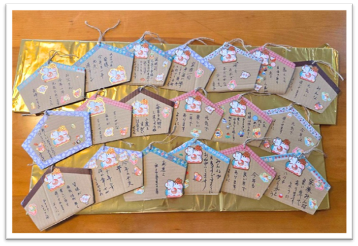 玄関には、みなさんで書いた手作りの絵馬が飾られています☆彡