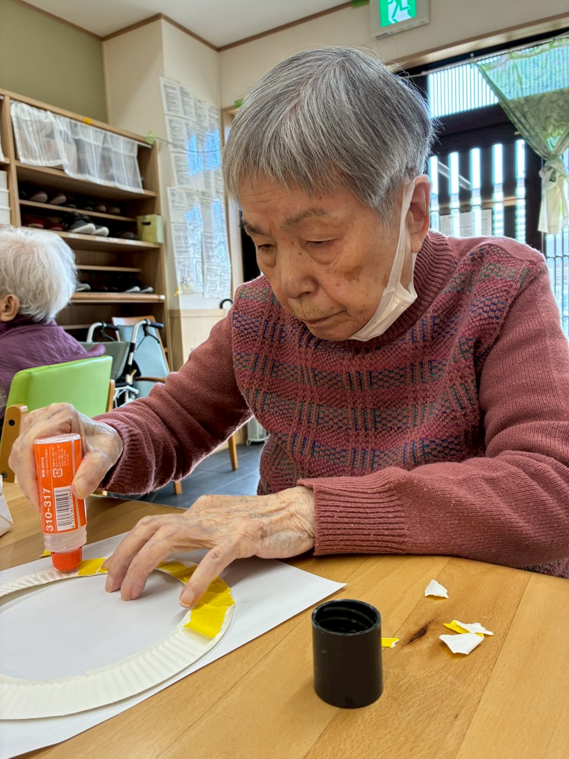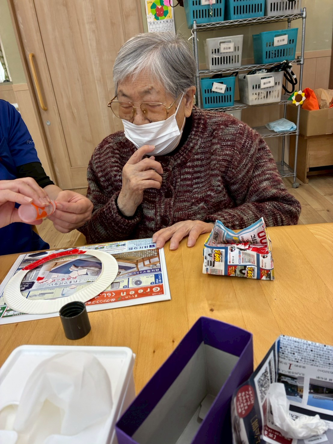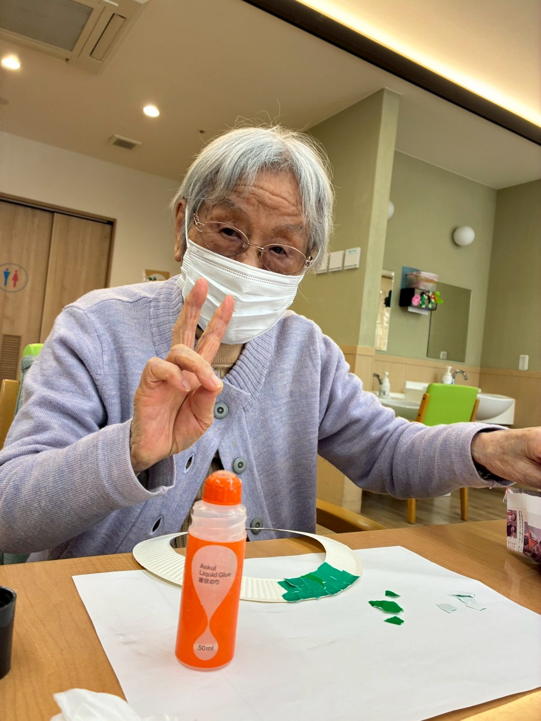 お正月が終わったと思えば、2月の豆まきの準備に入りました。皆さんと鬼のお面の制作中です。鬼のお面の色には意味があるようです。赤は欲望、黄色はわがまま、緑は不健康、皆さん、自分の吹き飛ばしたい思いを鬼の面の色にして作っています