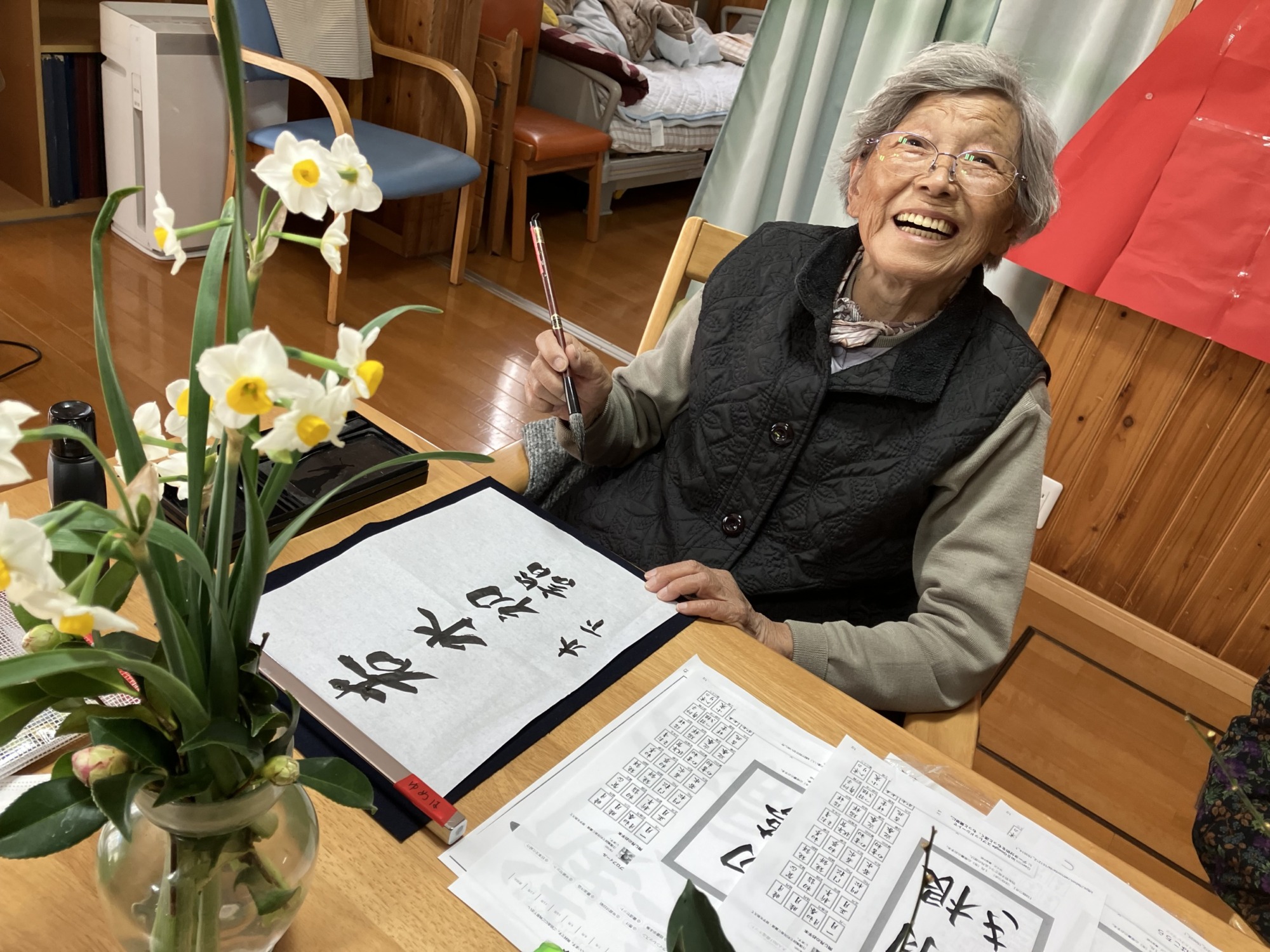 書き初めの様子と皆様の作品をご覧ください♡