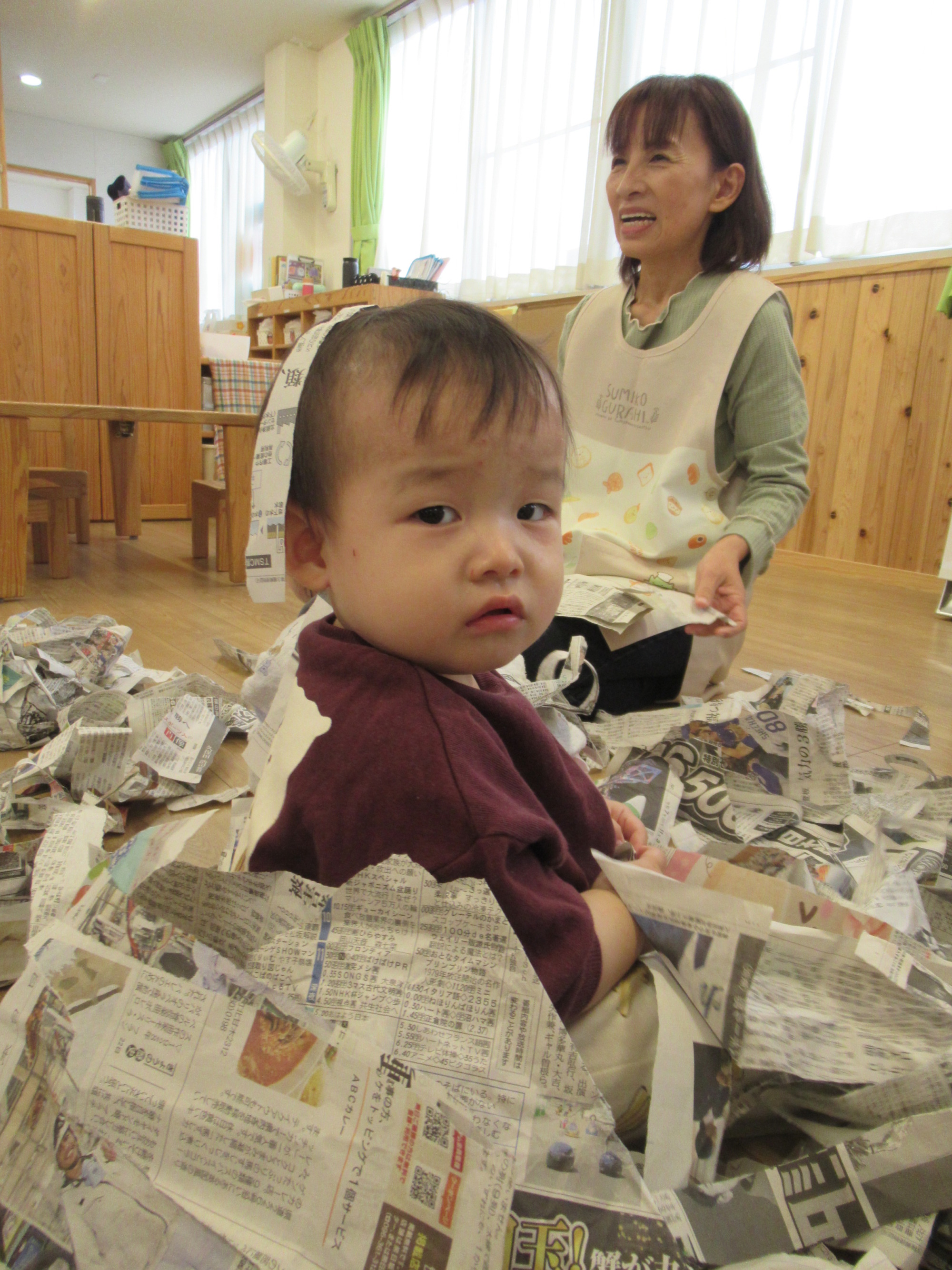 新聞紙でおしゃれも⁈楽しんでいました~😃
