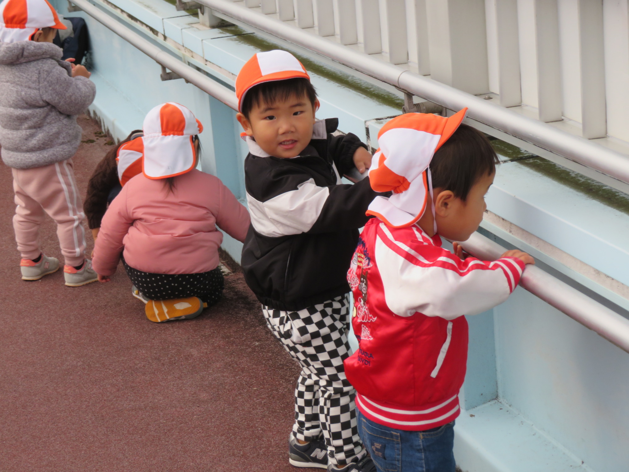 「ここから車がよく見えるよ~🚙」と先生に教えてくれています🎵