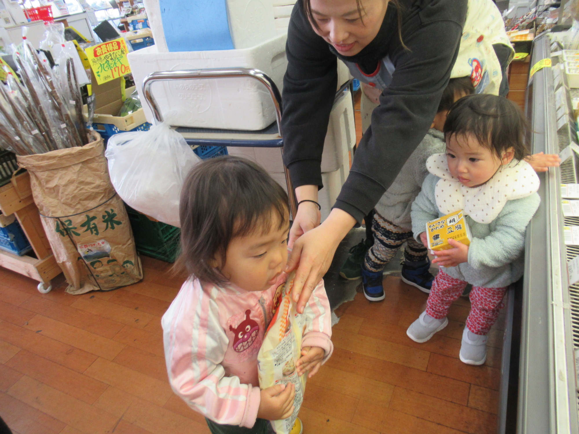 お豆腐とホットケーキミックスをしみず店に買いに行きました😆