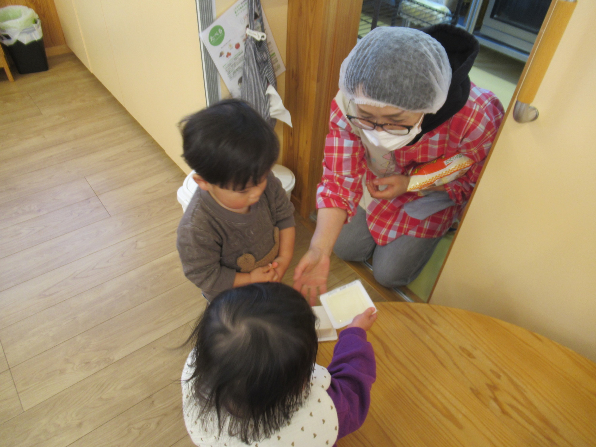 給食の先生に「はいどうぞ🎶」と渡しに行きました🍀
