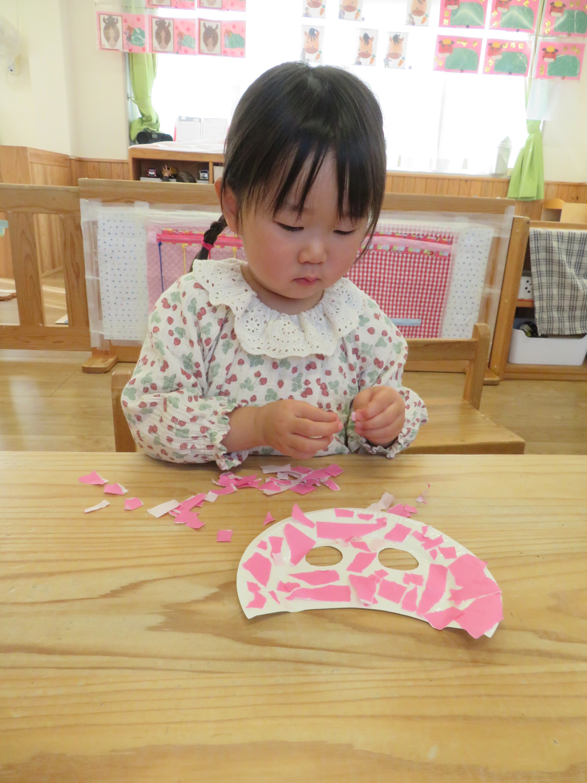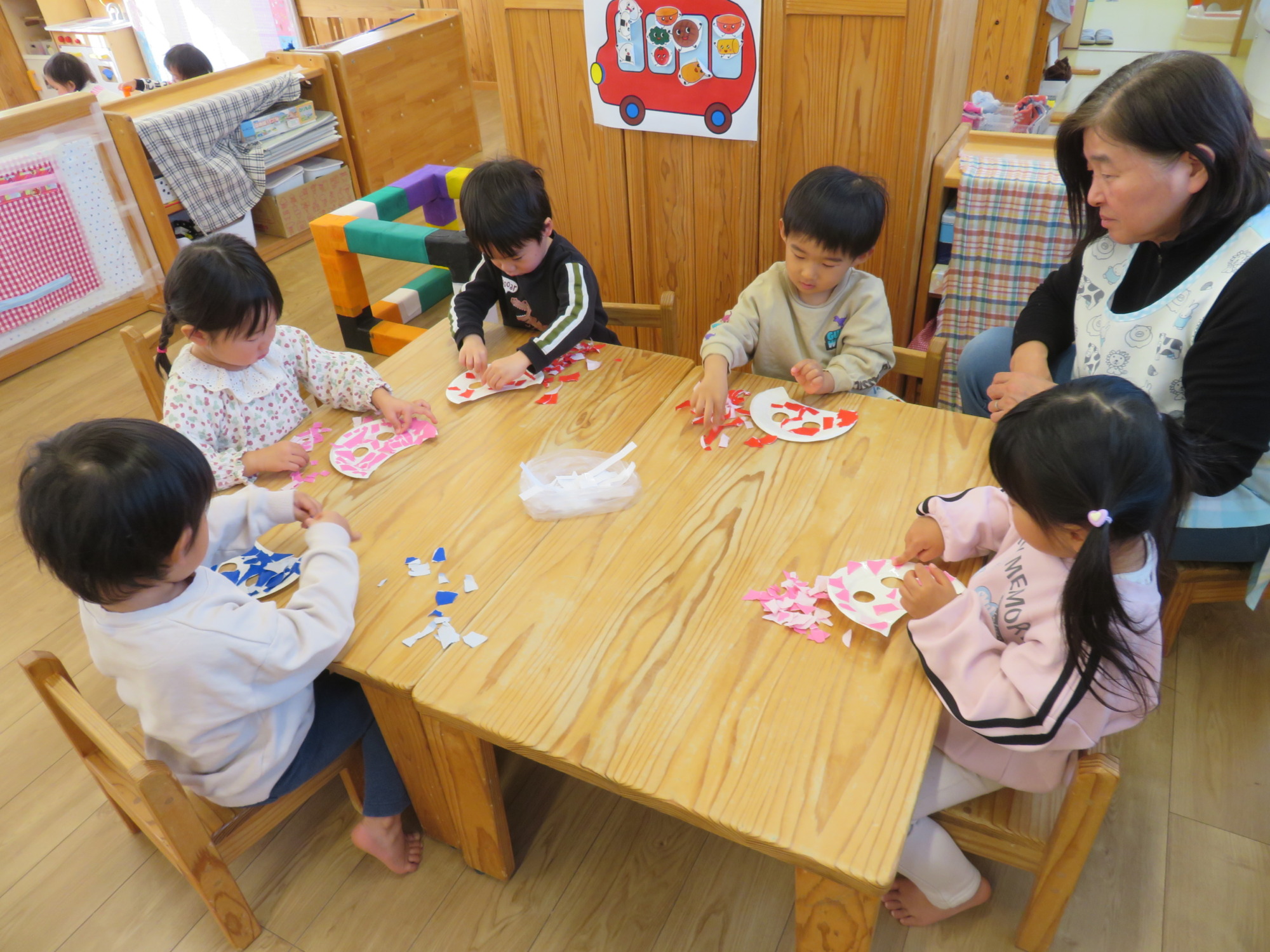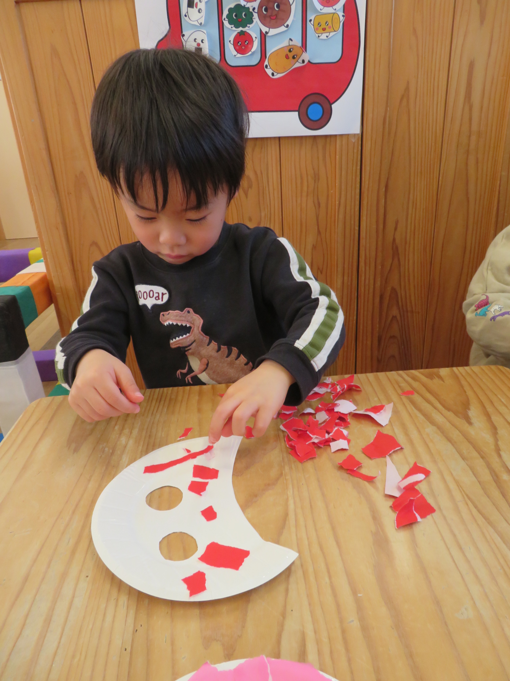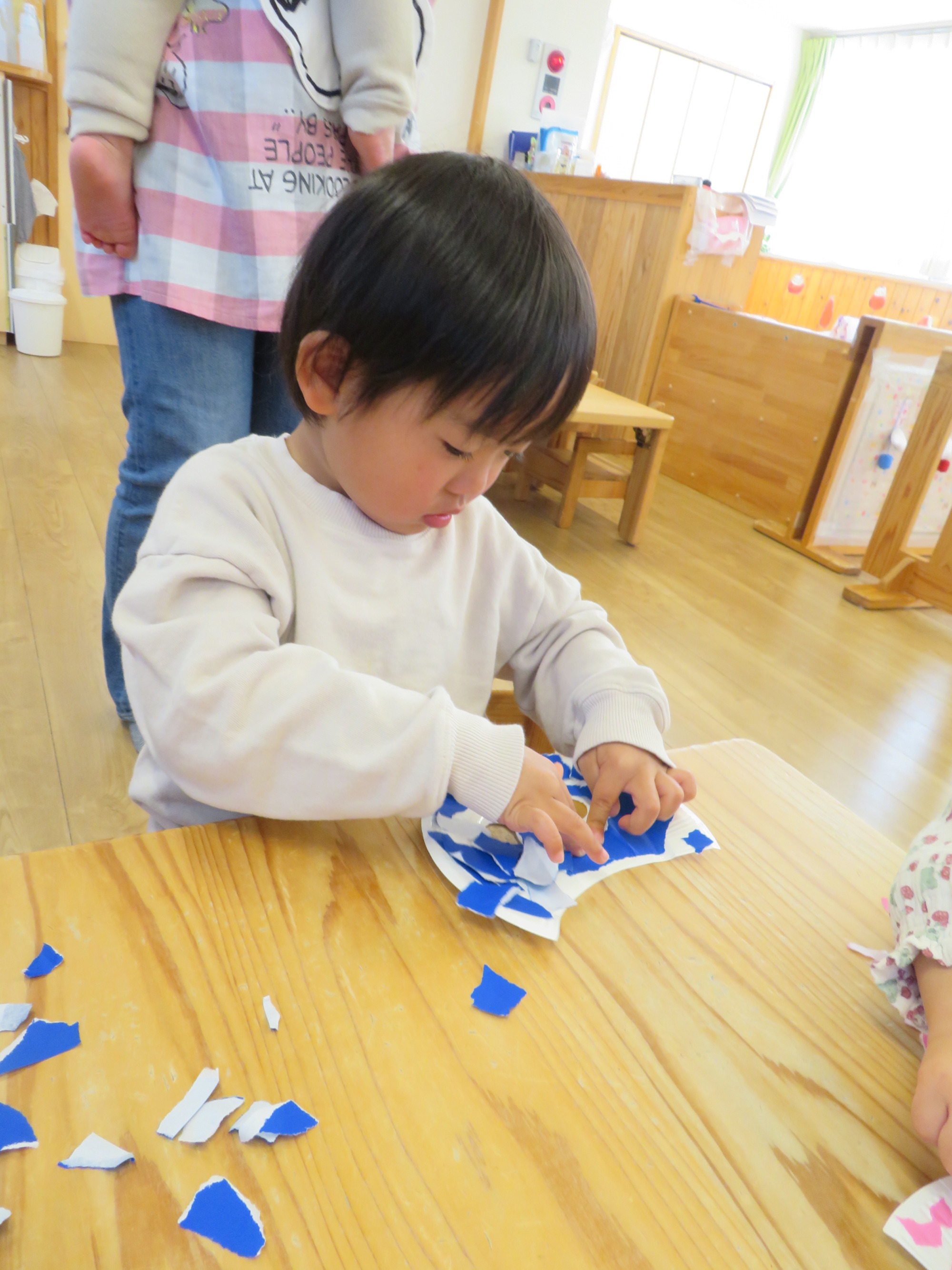 どの形の折り紙を貼っていこうかな❓と吟味する様子も🍀