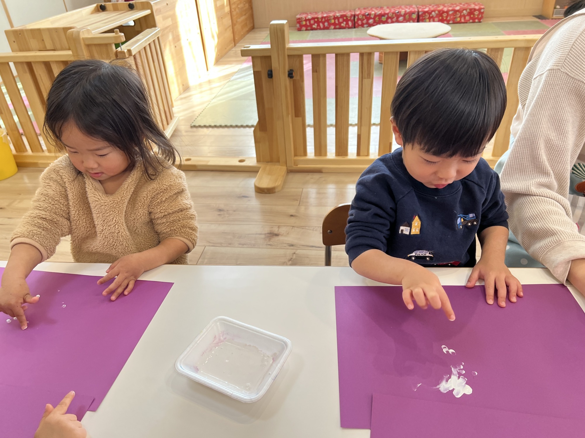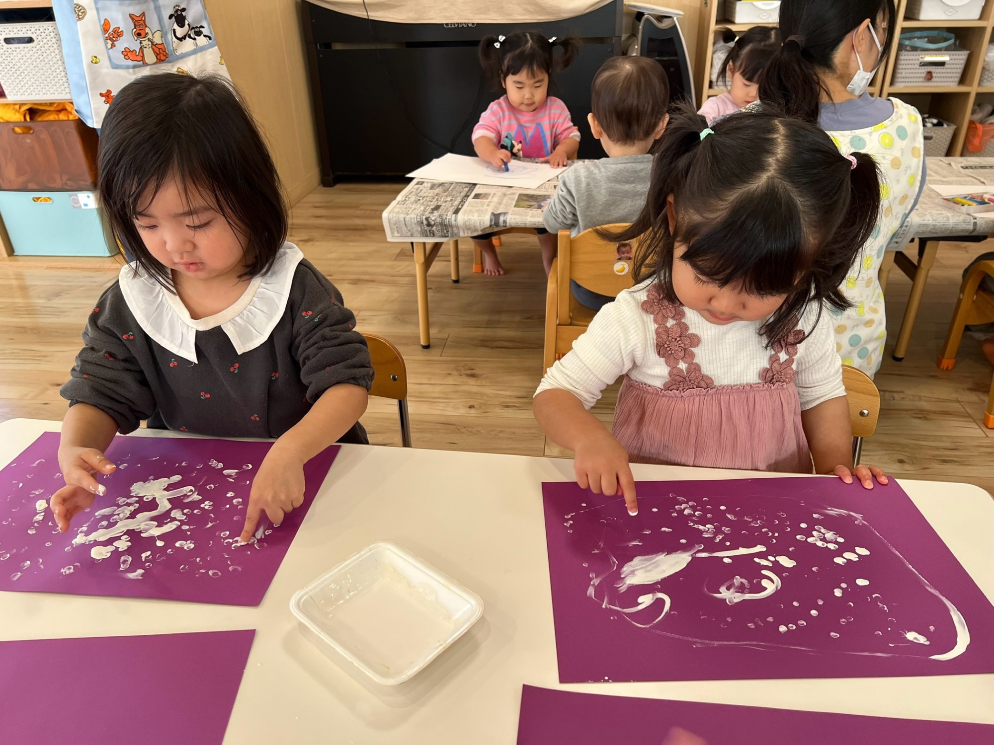 冬の製作は、指絵の具とはじき絵を楽しみました♪