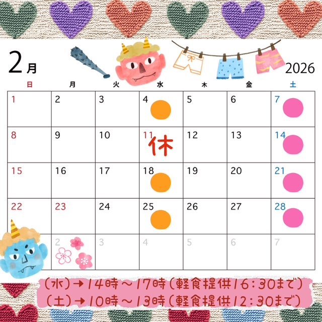 ※2/11(水)祝日のため、お休みです。 ご注意ください。
