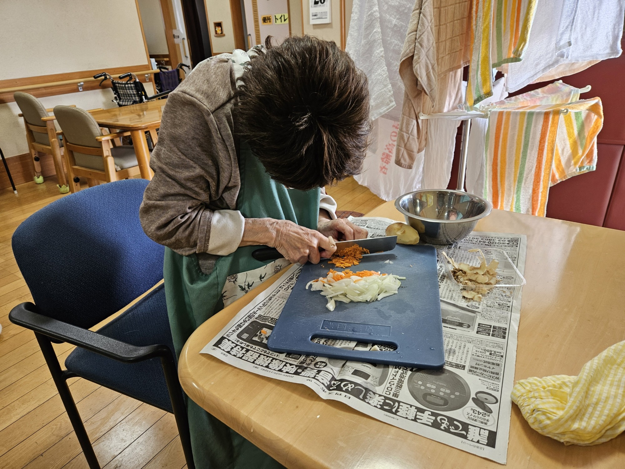 お野菜を切ったり、お掃除を手伝っていただいたり、