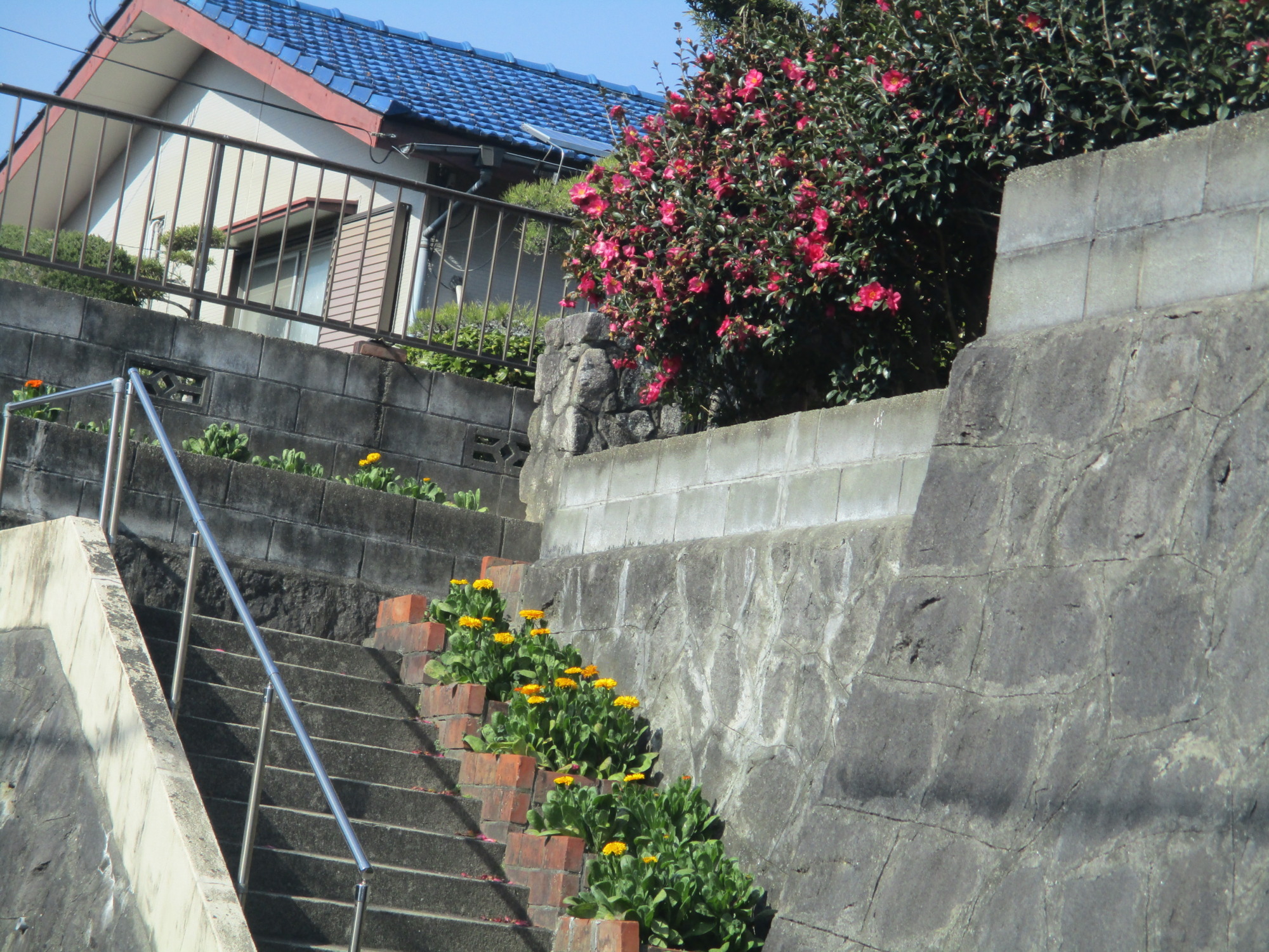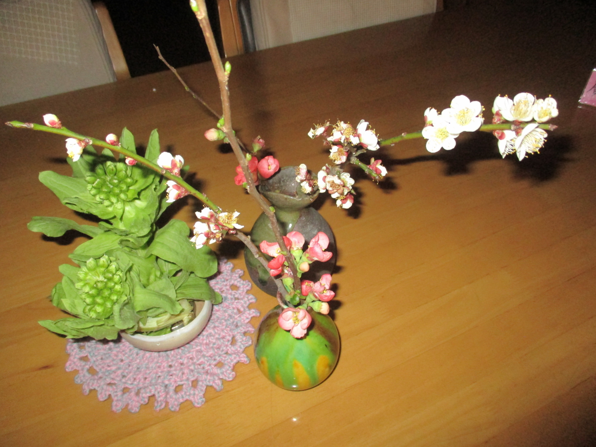 ご利用者様が自宅のお庭から持ってみえた、梅の花と木瓜の花です。
