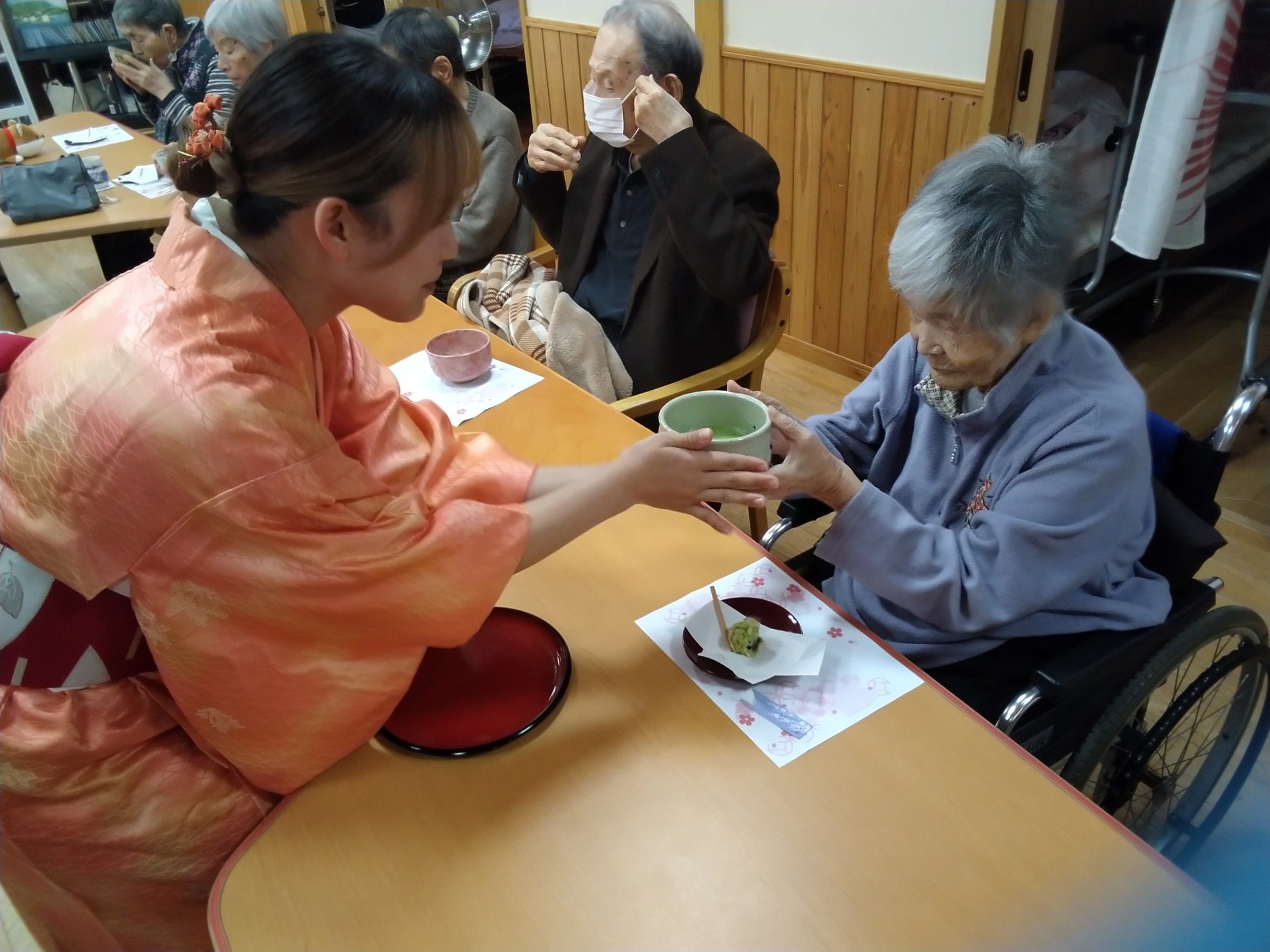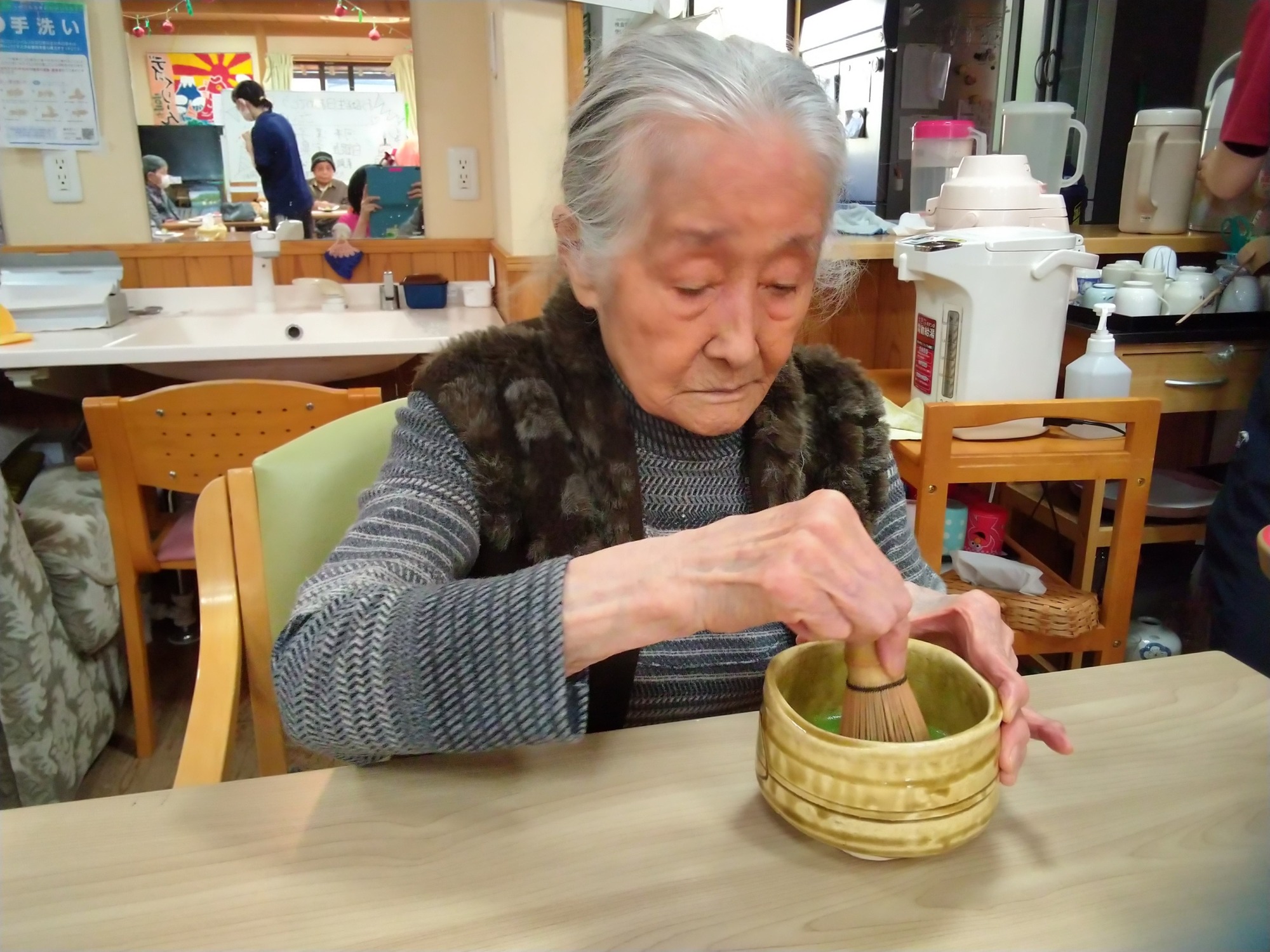 この日の主役は、お茶をたてることがお好きな女性利用者さん。