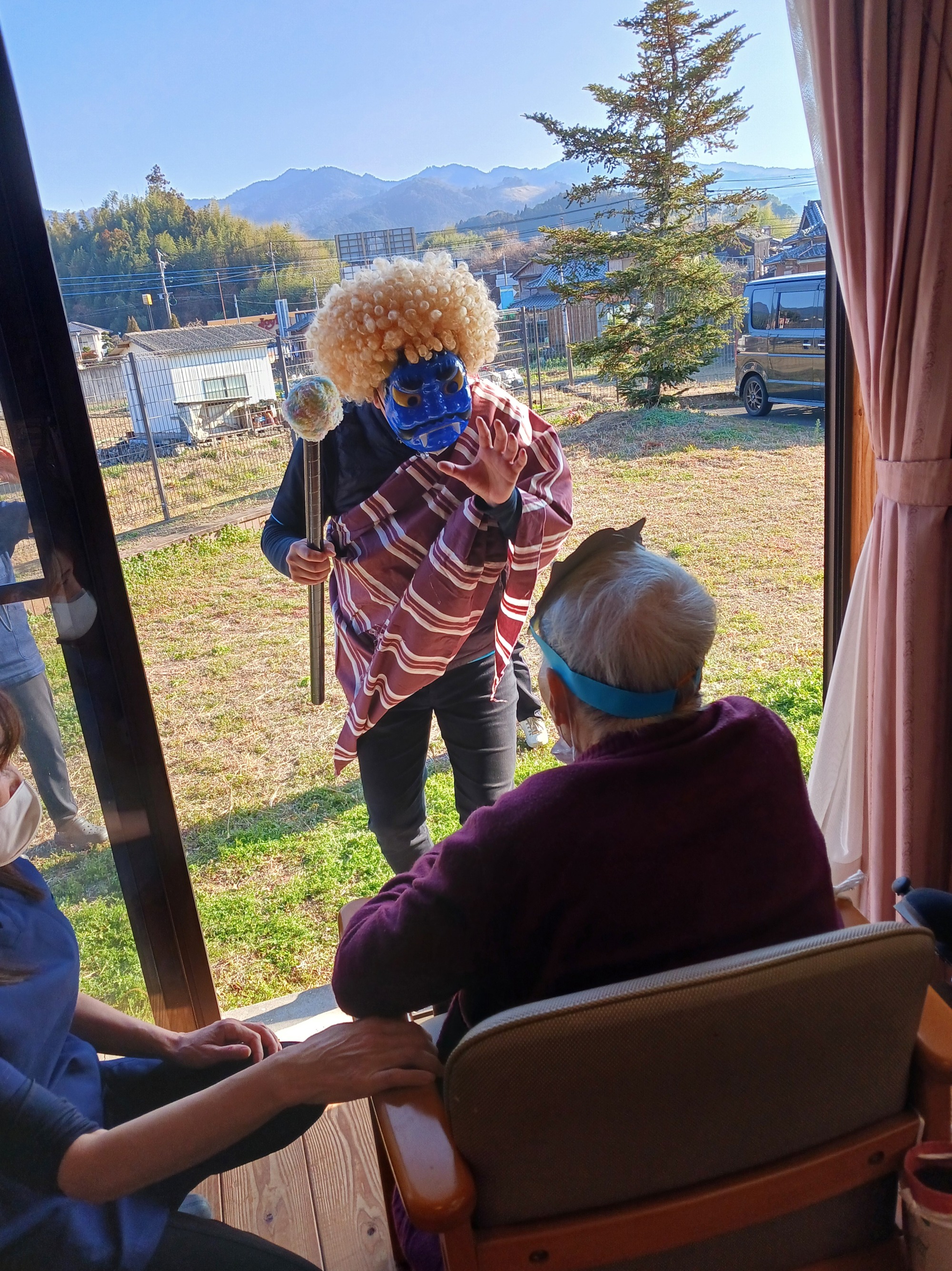 ご利用者さんに豆をまいてもらって、邪気を払って福を呼び込んでいただきました。