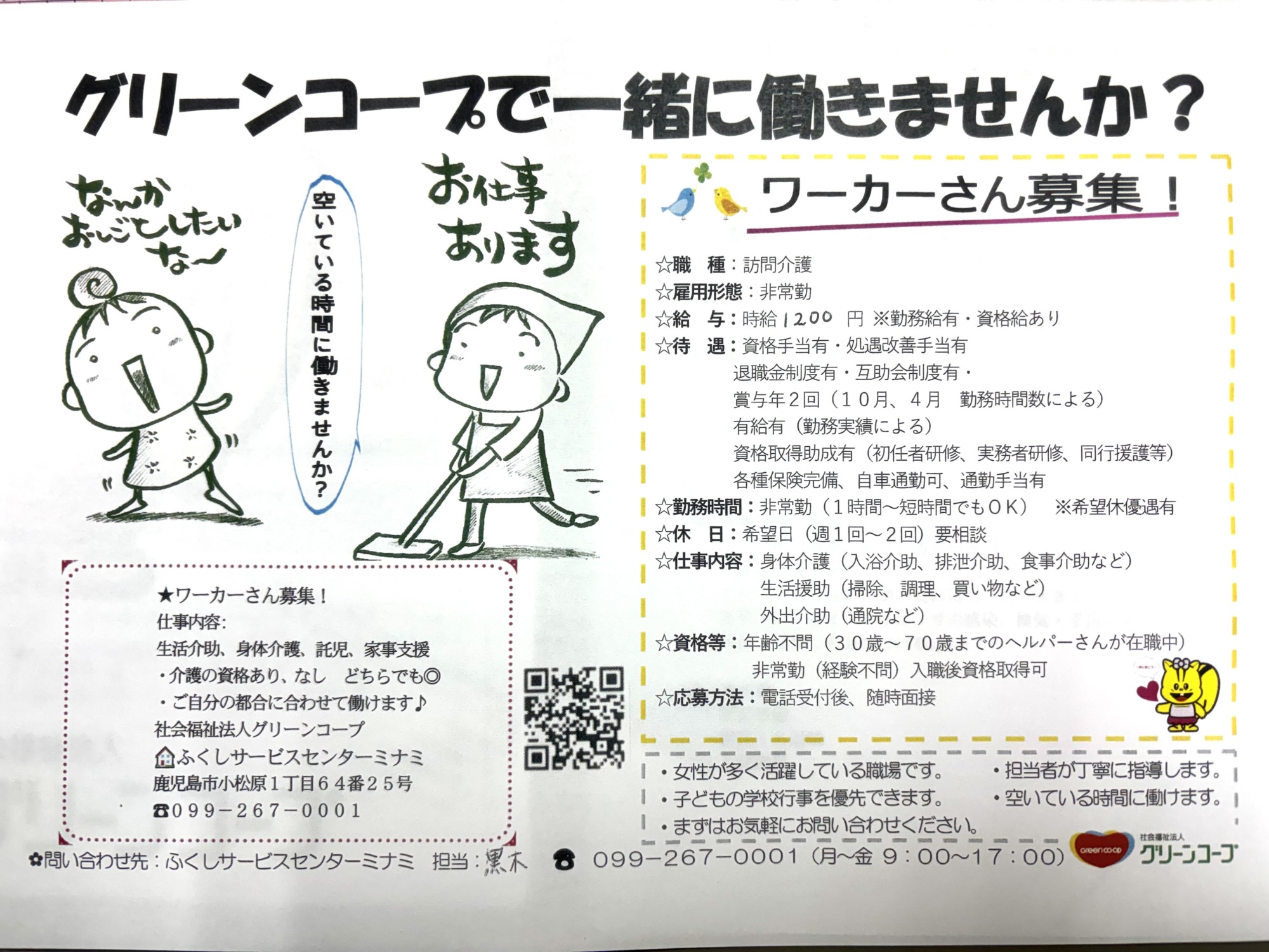 ふくしサービスセンターミナミでは一緒に働いてくださるワーカーさんを募集しています(*^▽^*)