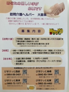 訪問介護ヘルパーを大募集しています(o^―^o)