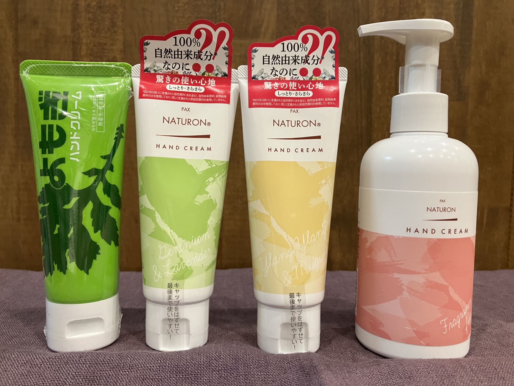 パックスナチュロン ハンドクリームのポンプタイプ 無香料が新しく仲間入りしました(右)
