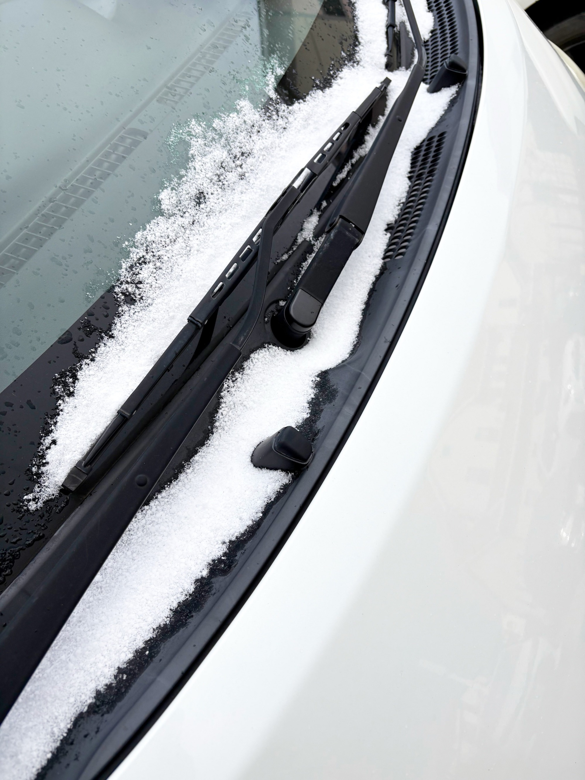 外部ケアに行こうと外に出ると…雪がちらついており、ワイパー周辺には少しだけ積もっていました💦