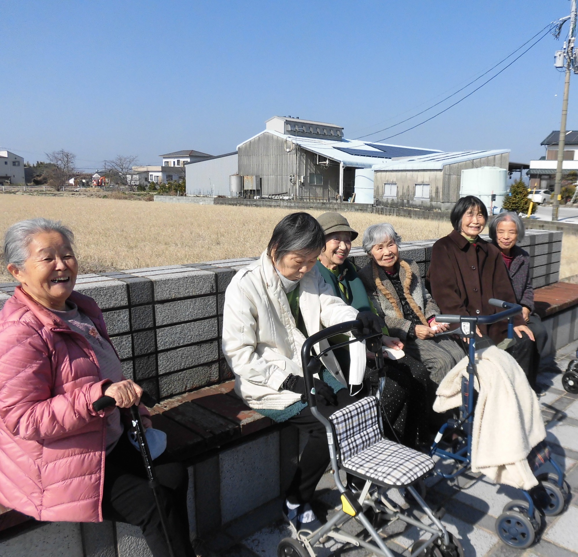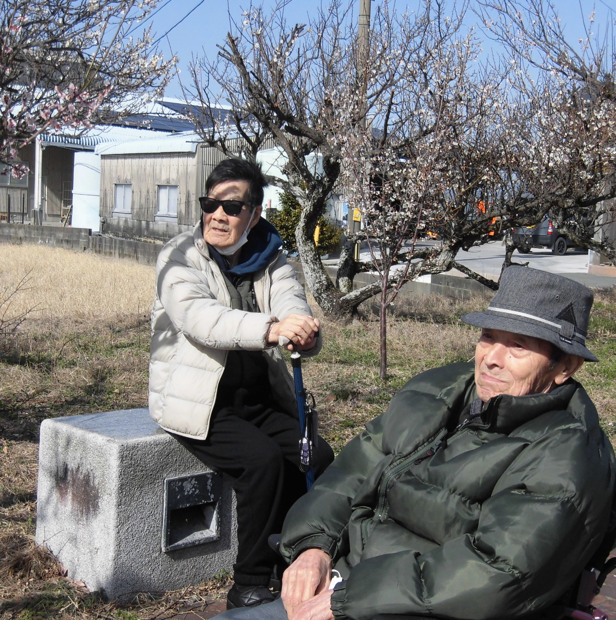 歩いた後は、公園のペンチで皆さん一緒に休憩タイム。梅見を満喫され、お話しも大盛り上がり☆ なかなか外に出る機会の少ない方が多いので、外に出て気分転換できる機会を作ることも大事にしています。次回は、桜を見に行きましょうね♡
