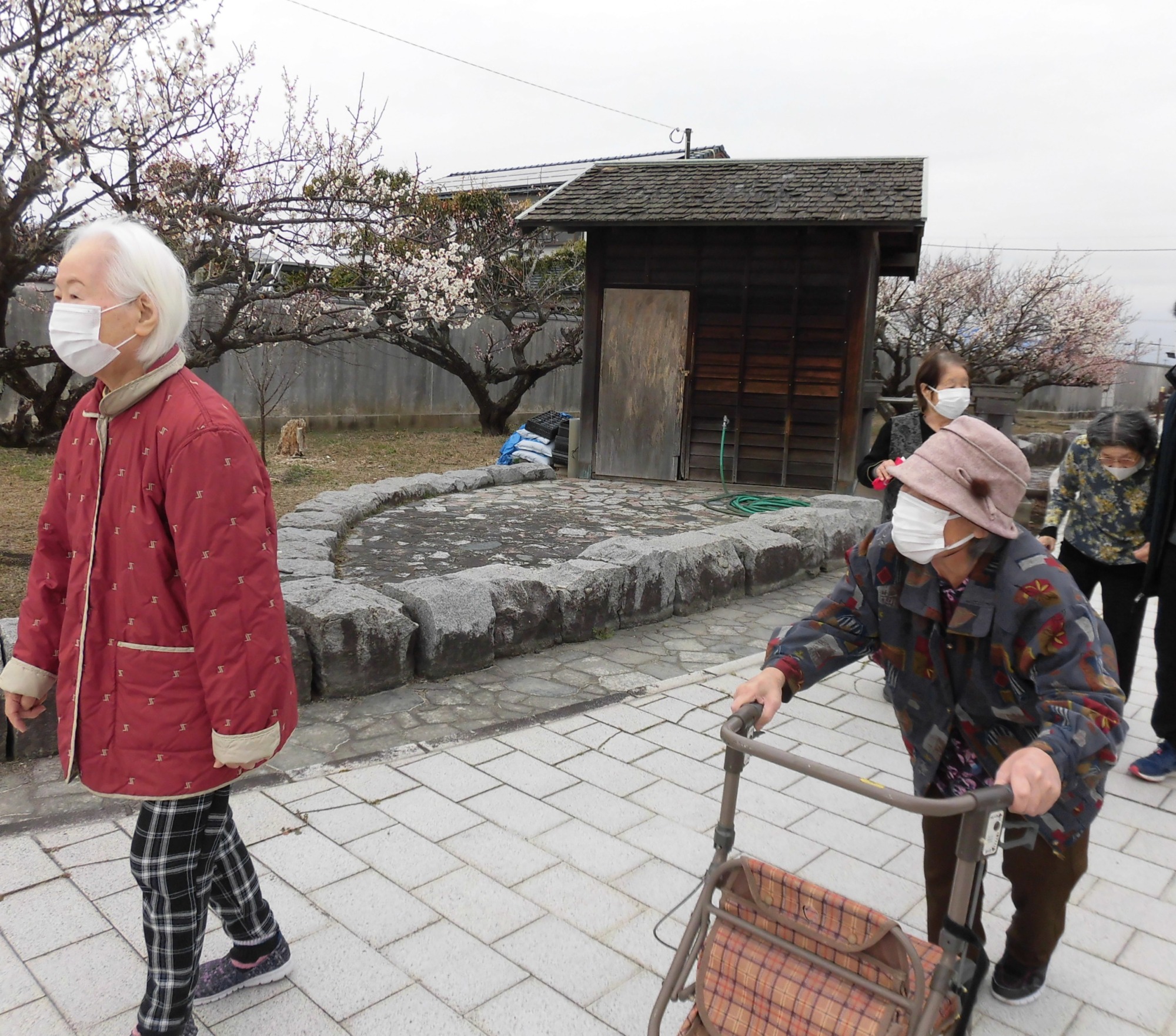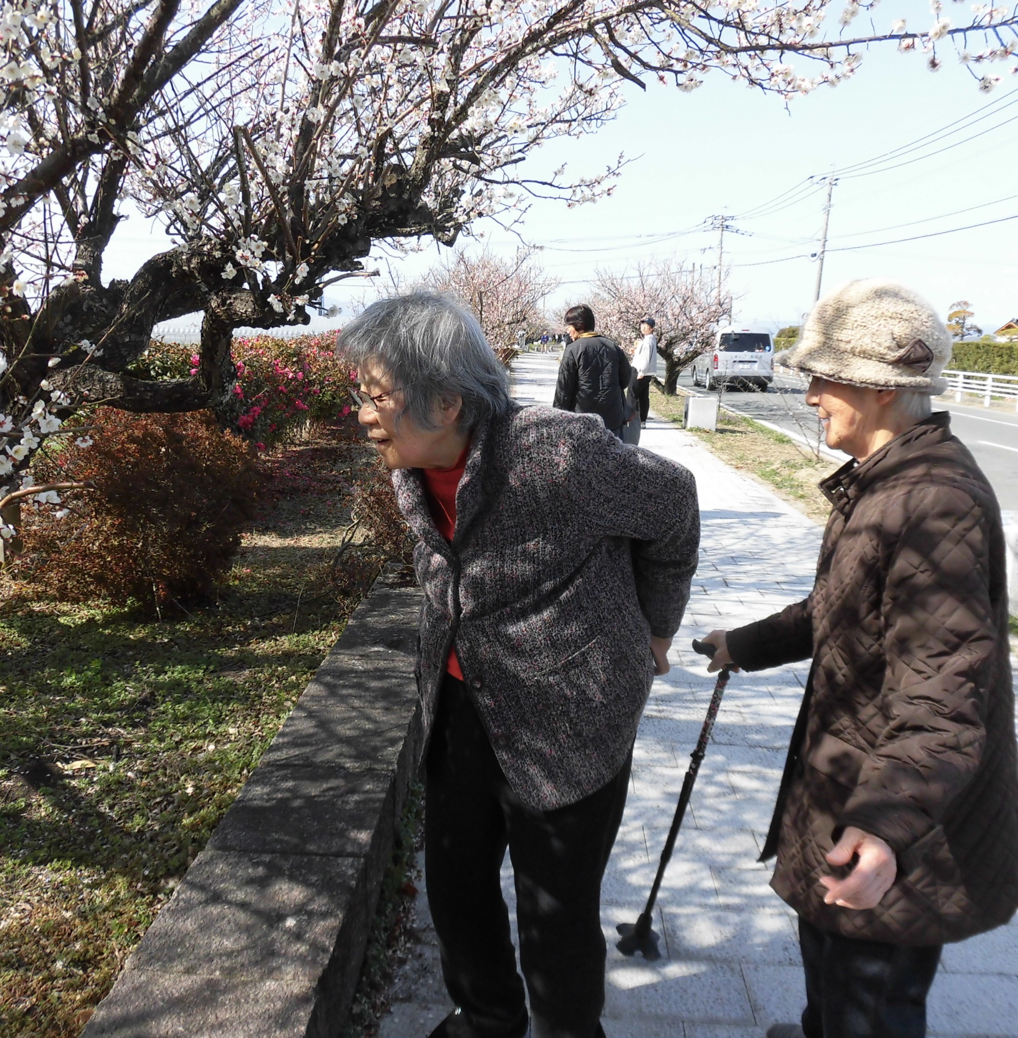 綺麗な梅の花が誘っているのか、ご利用者の歩調も軽やか!!