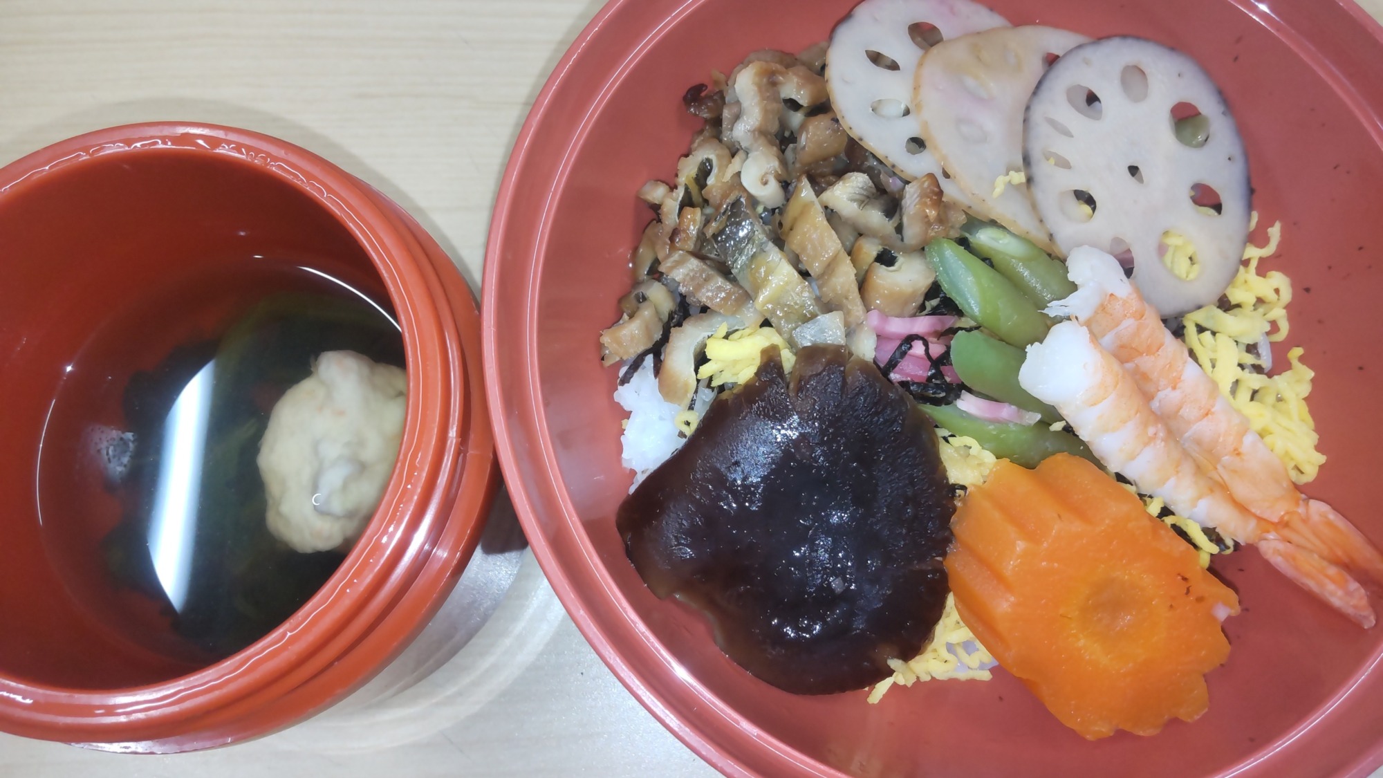 毎月15日の昼食はちらし寿司です。毎月好評です。ぜひ一度試してください。