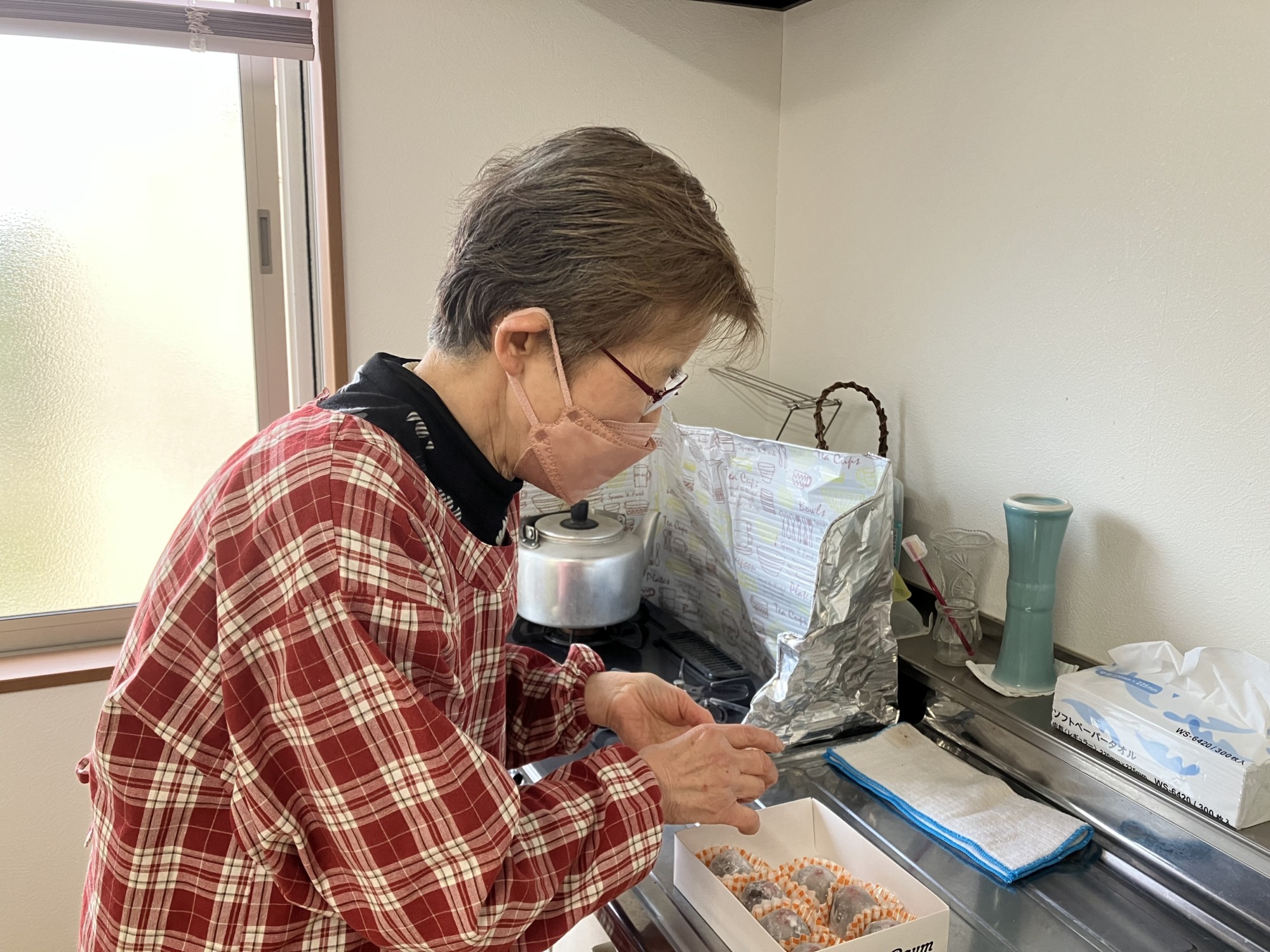啓蟄も過ぎ、桜の開花日予想も発表される陽気となりました。結ふたばのヘルパーさんから、お手製の和菓子をいただきました。いちご大福です。電子レンジを使って、手軽に作ることができるそうです。