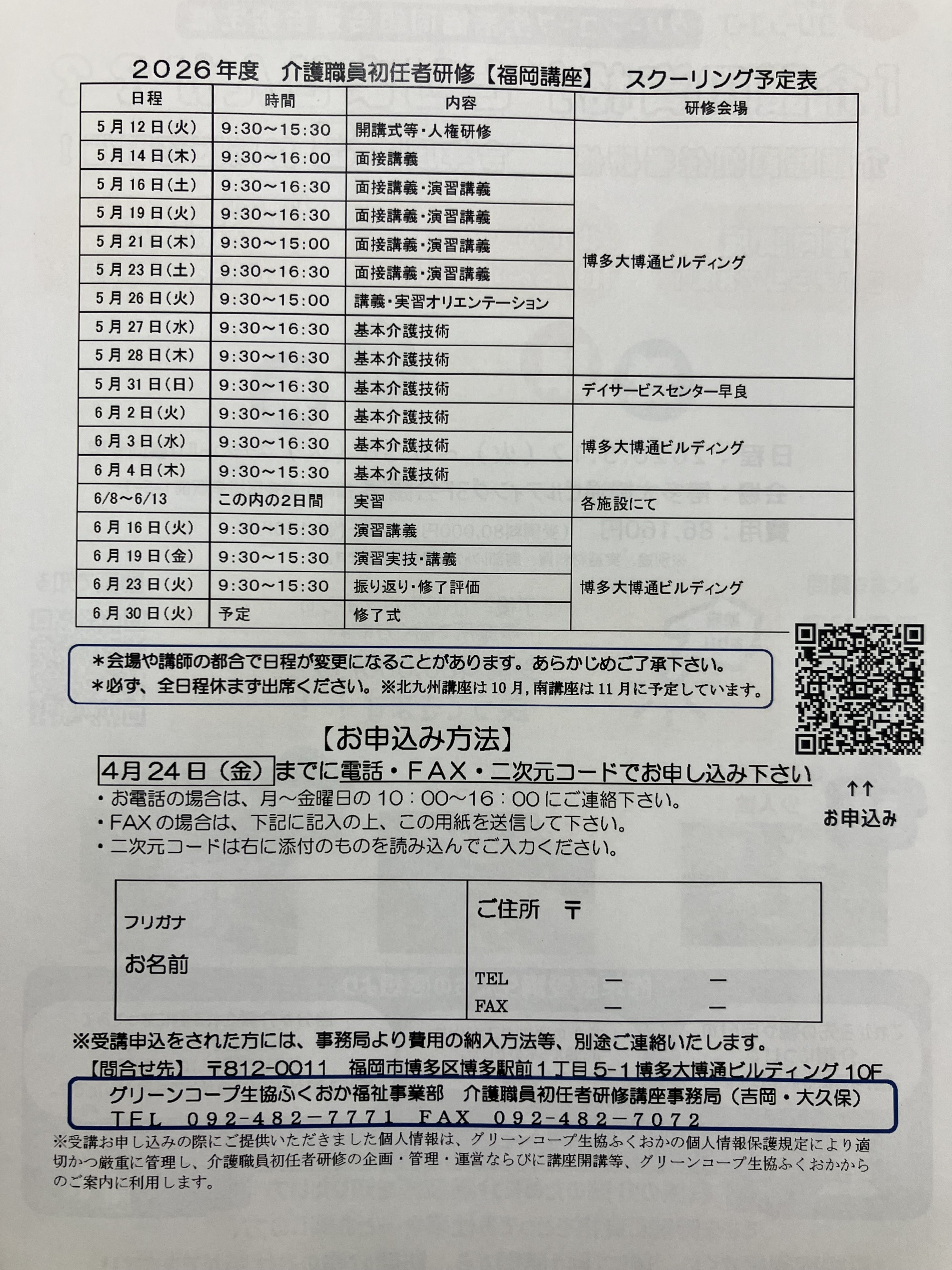 介護職員初任者研修(福岡講座)の