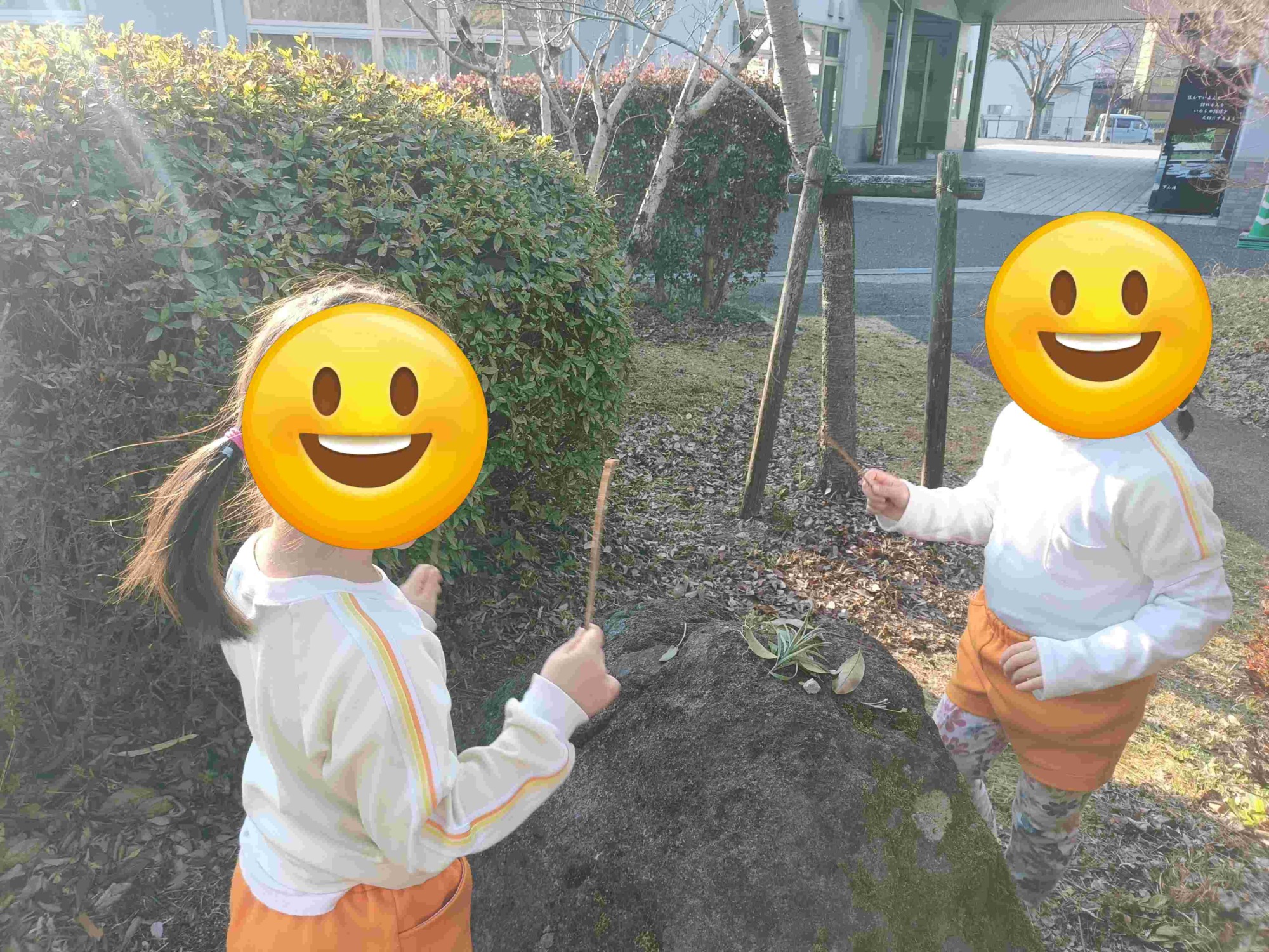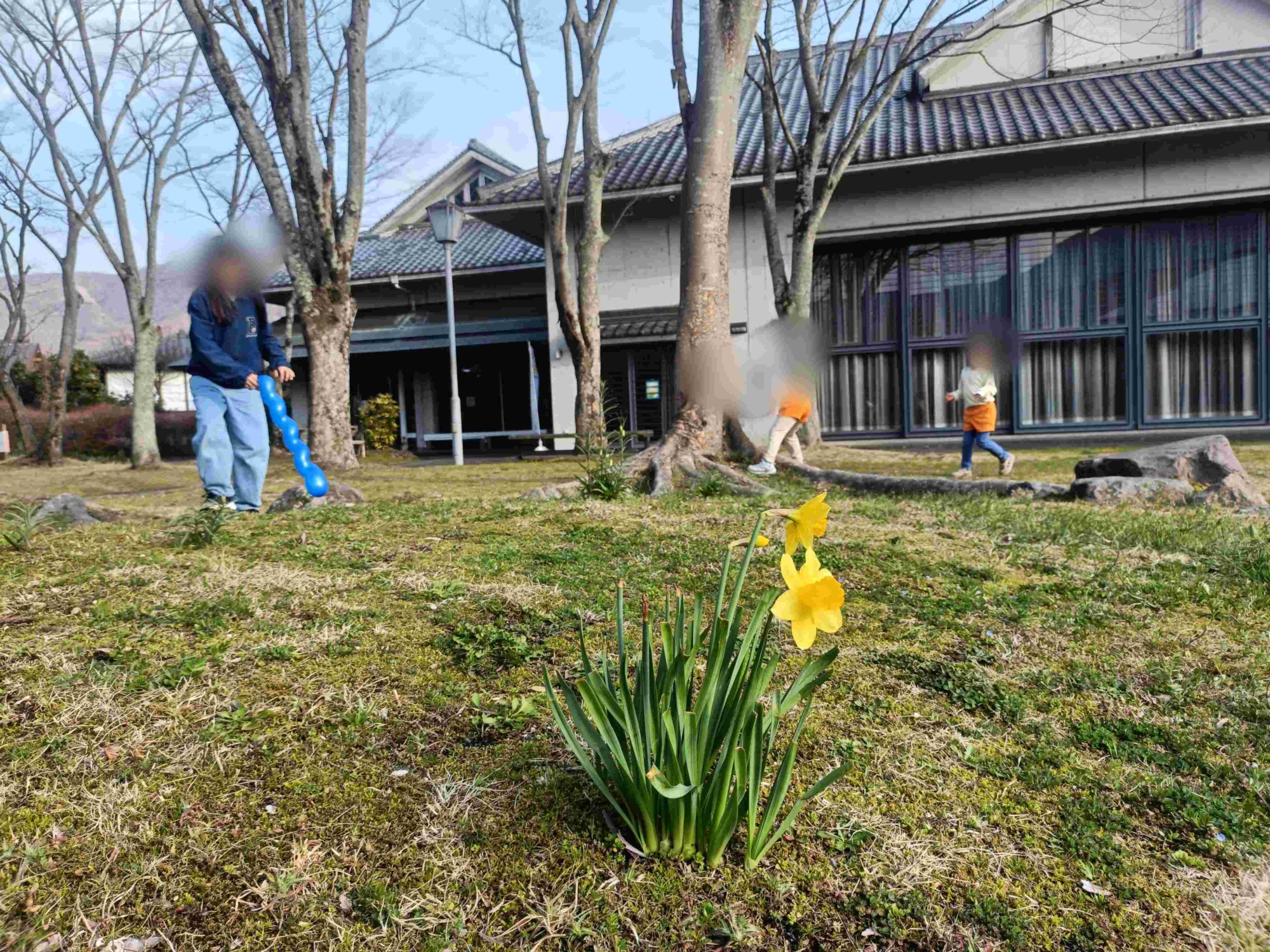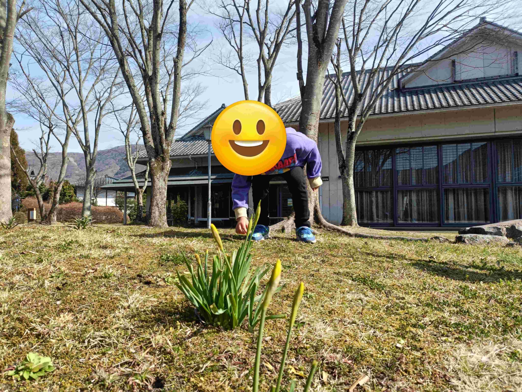 野菜と果実のスムージーとプレーンとココアでほんのり三色になりました。 寒い日も元気にお庭で遊びました。 後半は暖かくなりお花も咲きました。