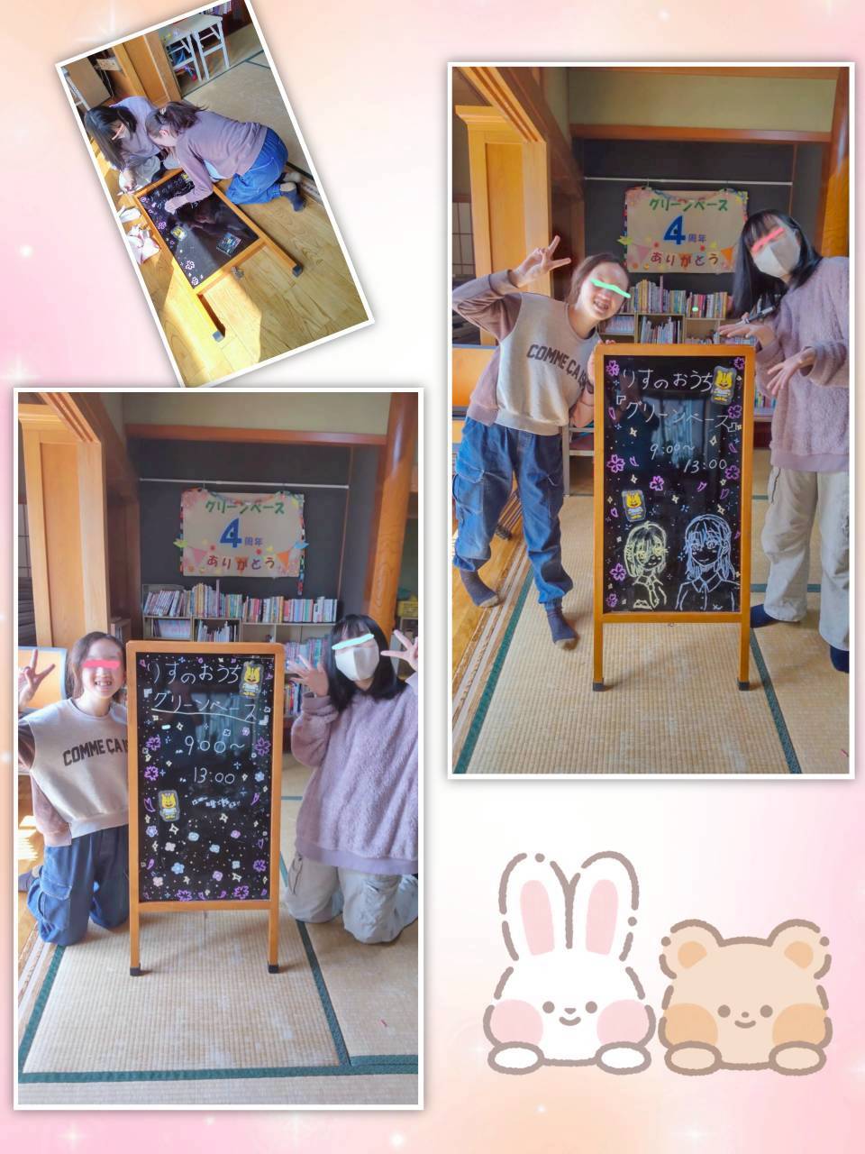 中学生の女の子たちが看板を春らしく可愛くリニューアルしてくれ ました!!