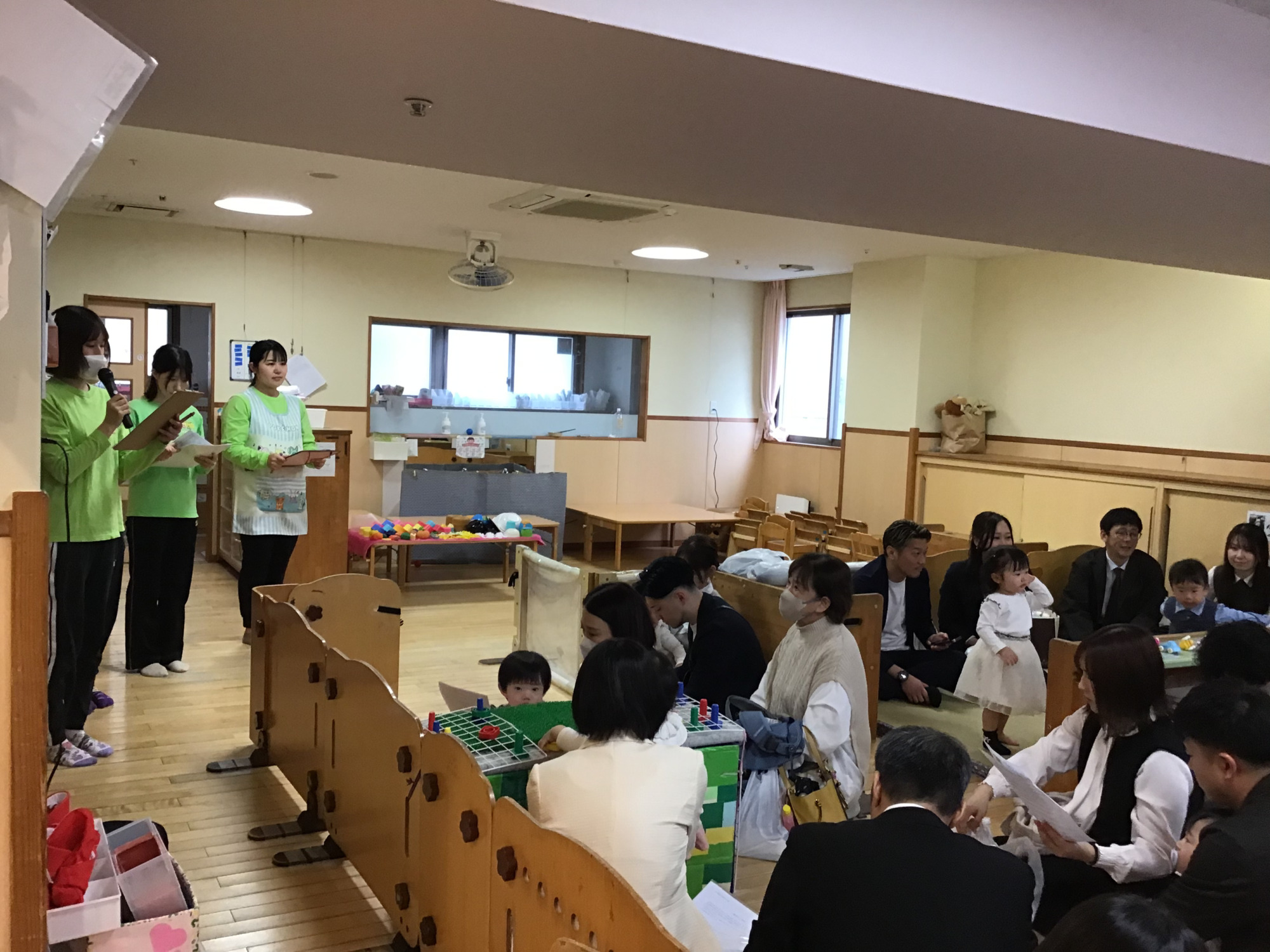 次に3歳児ぱんだ組・4歳児くま組・5歳児きりん組の部が2階にて行われました。