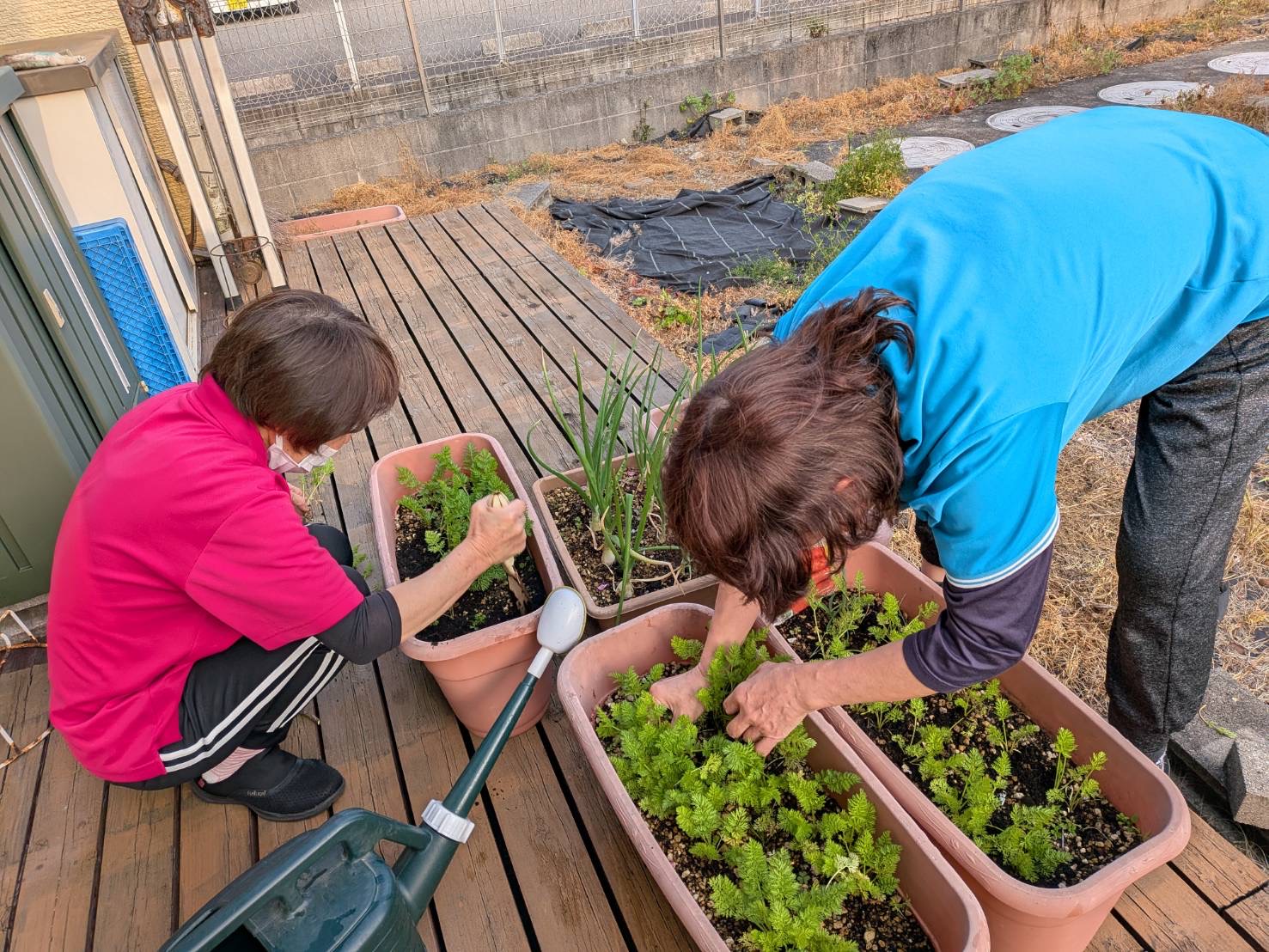 ご利用者やワーカーさんが毎日水やりを行ったり、まびきをおこない少しづつ大きくなってきました。