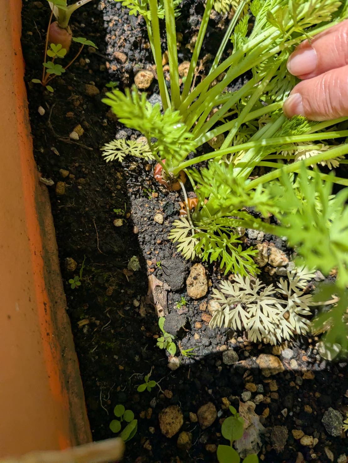 まびきした人参です。とてもかわいくて捨てるのがもったいない。