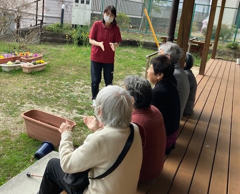 外のおいしい空気をたっぷり吸って、春を感じていただいています。