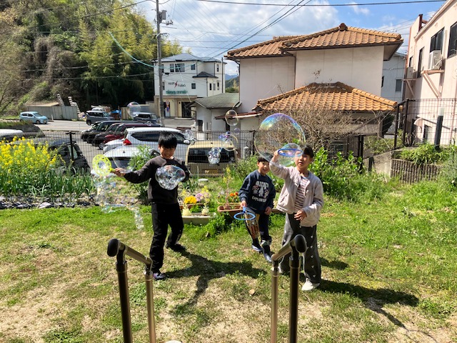 大きなシャボン玉を作って見せてくれて利用者さんも嬉しそうでした。