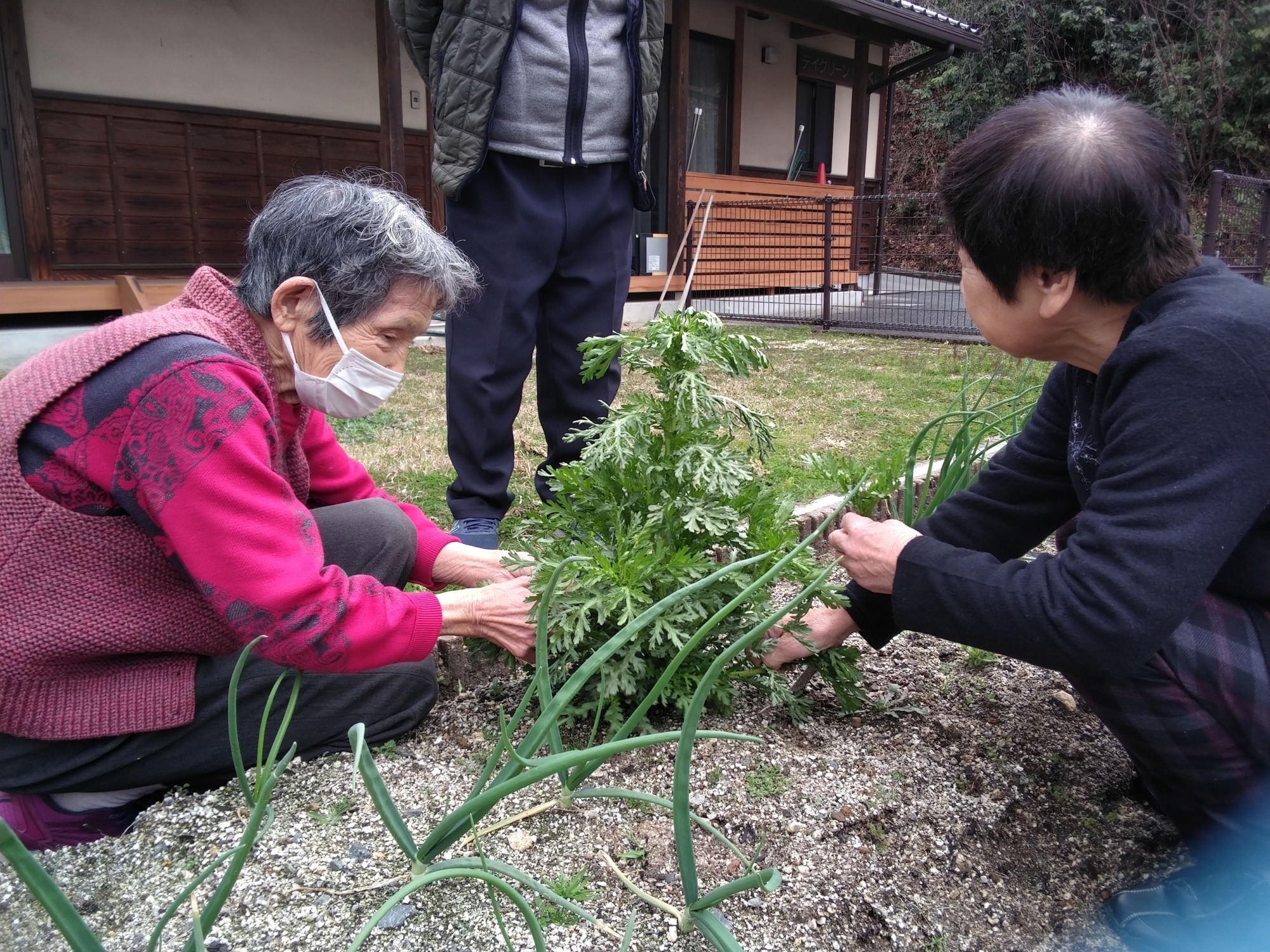 縁側に座って談笑したり、野菜の収穫、花摘み、作品作りなどなど。