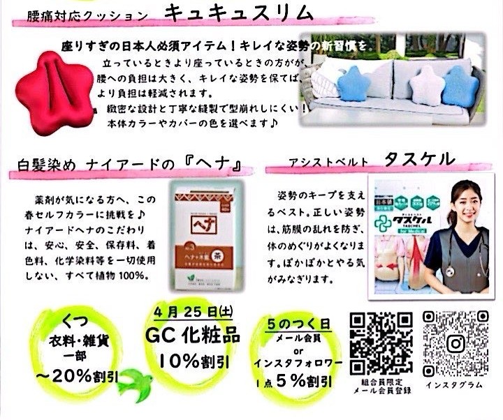 4/15はお好きな商品1点5%割引と「春のチャレンジフェア」スタートの日です♪
