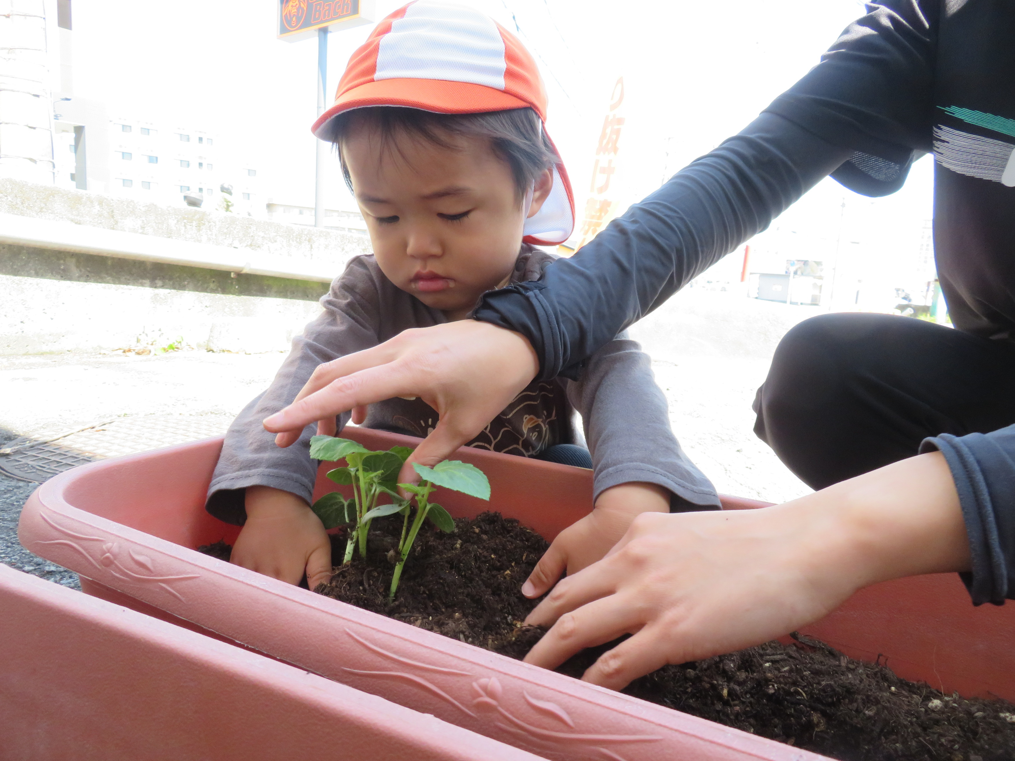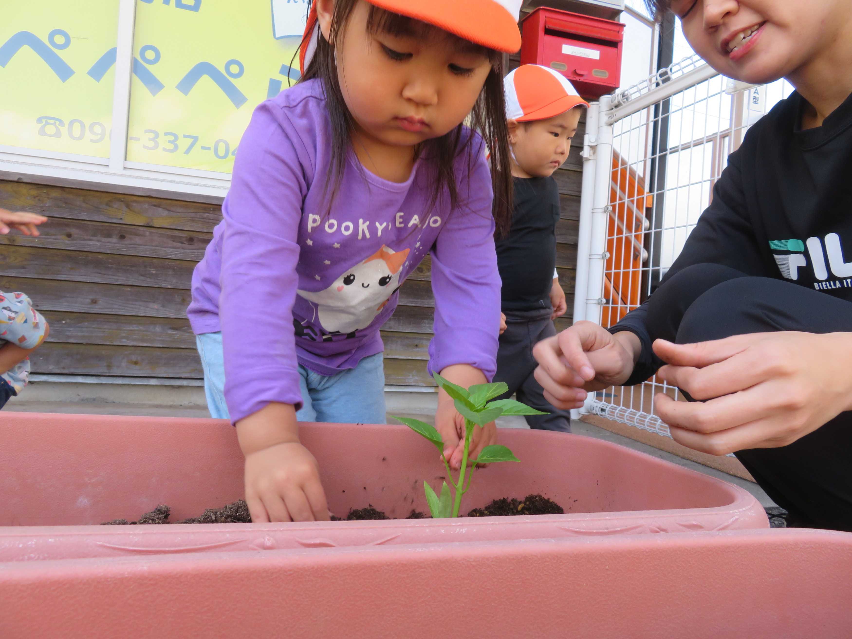 (事前に先生と子どもたちでどの野菜を植えるのか投票式で選んでいました🌝)