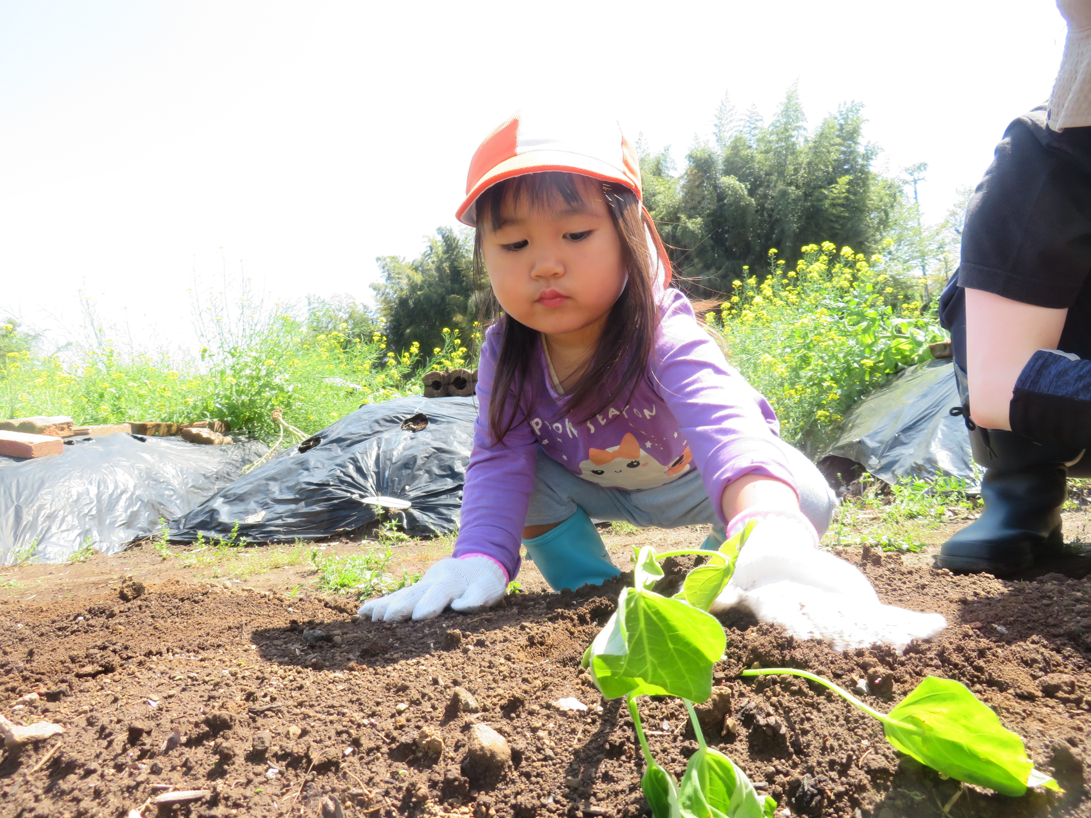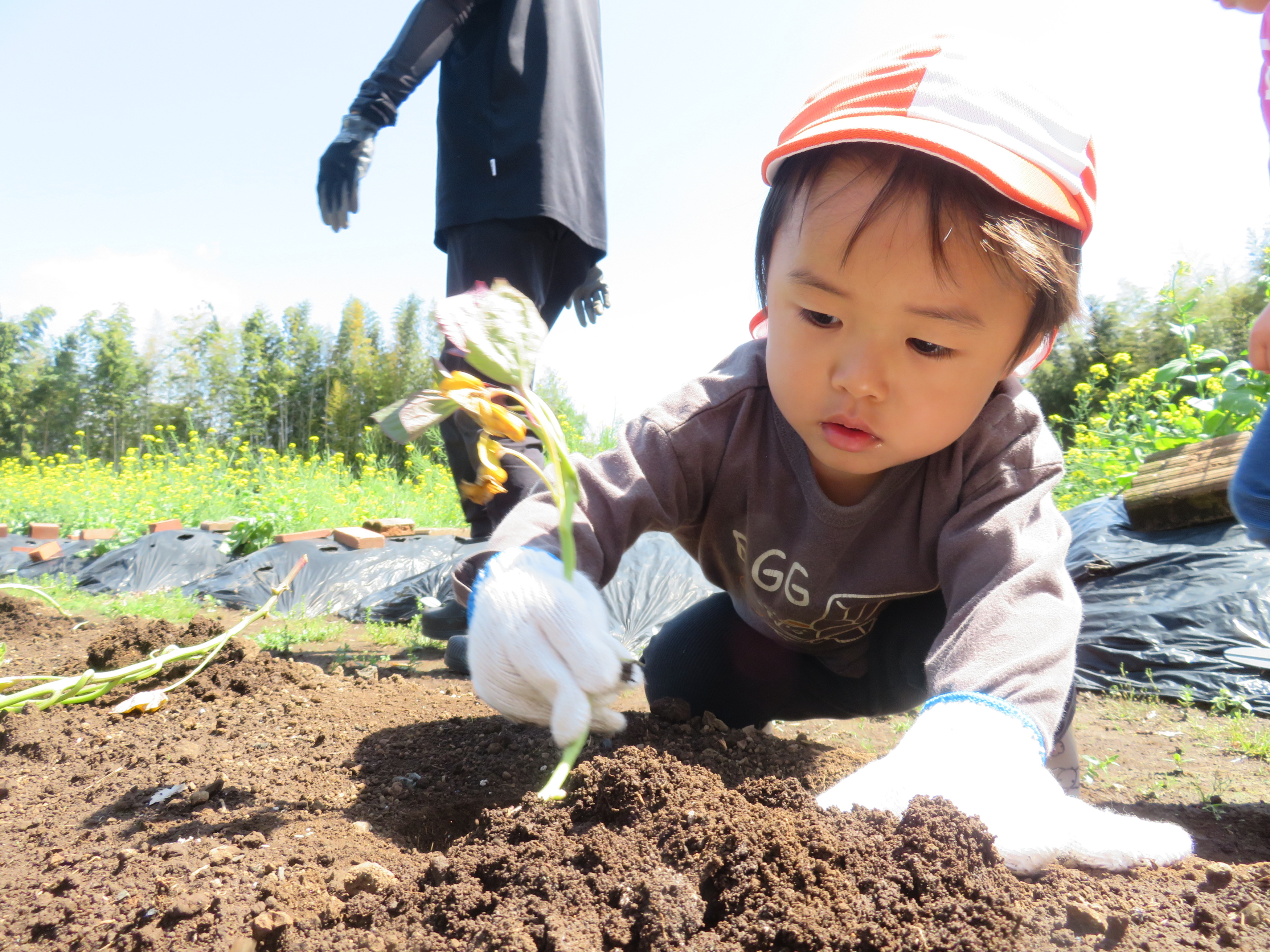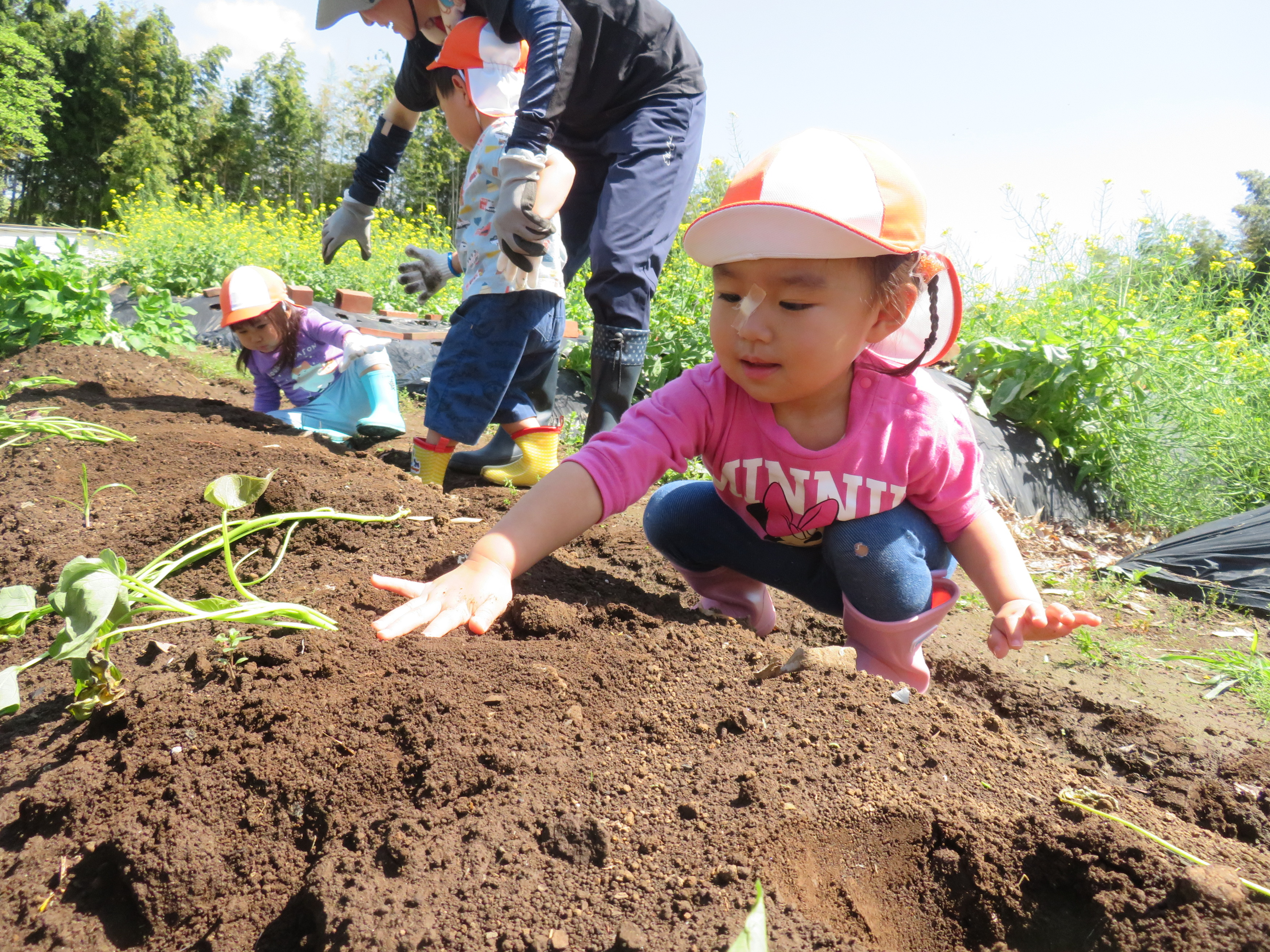 軍手を外して土の感触を楽しむお友達もいました🔍