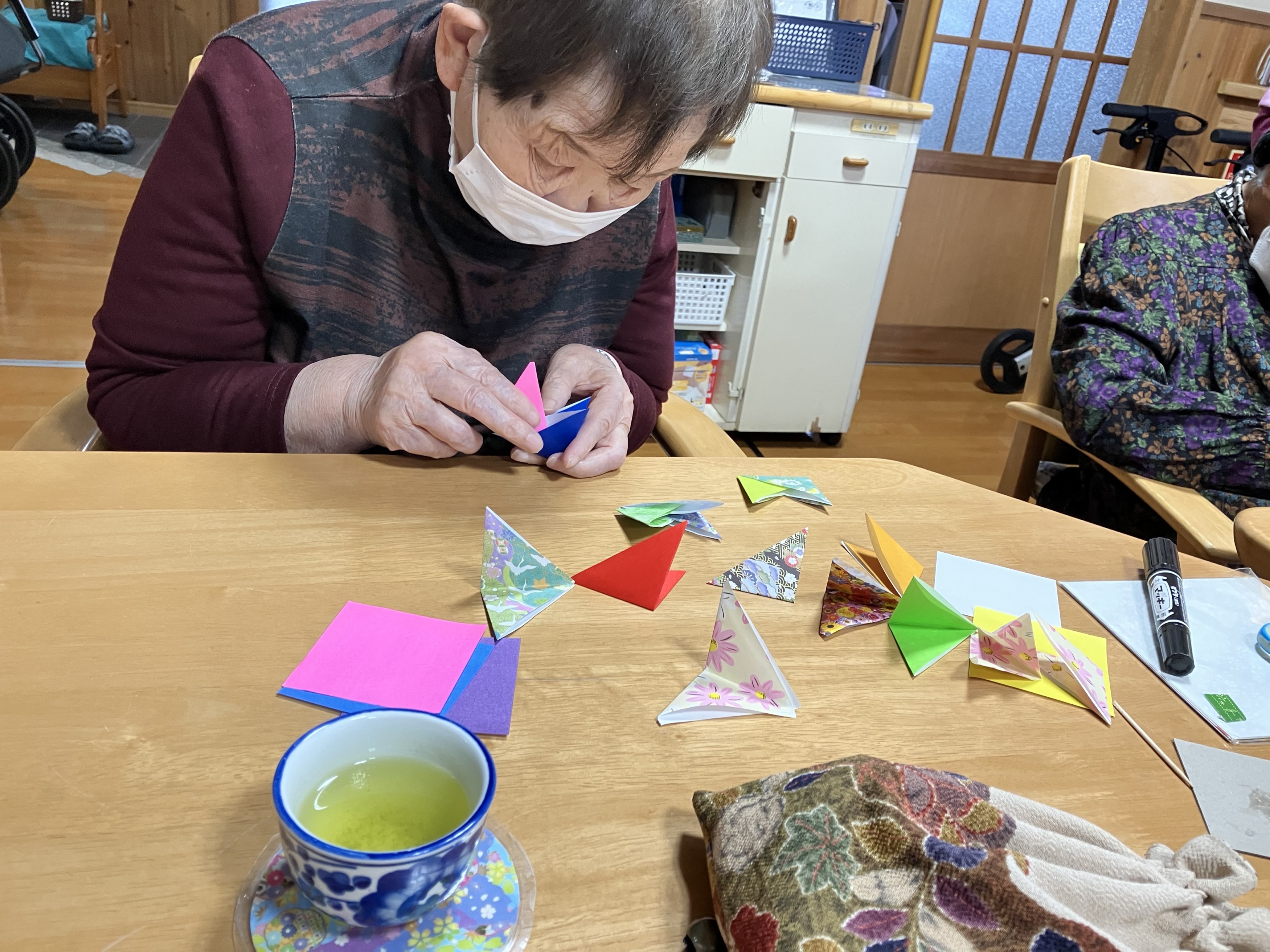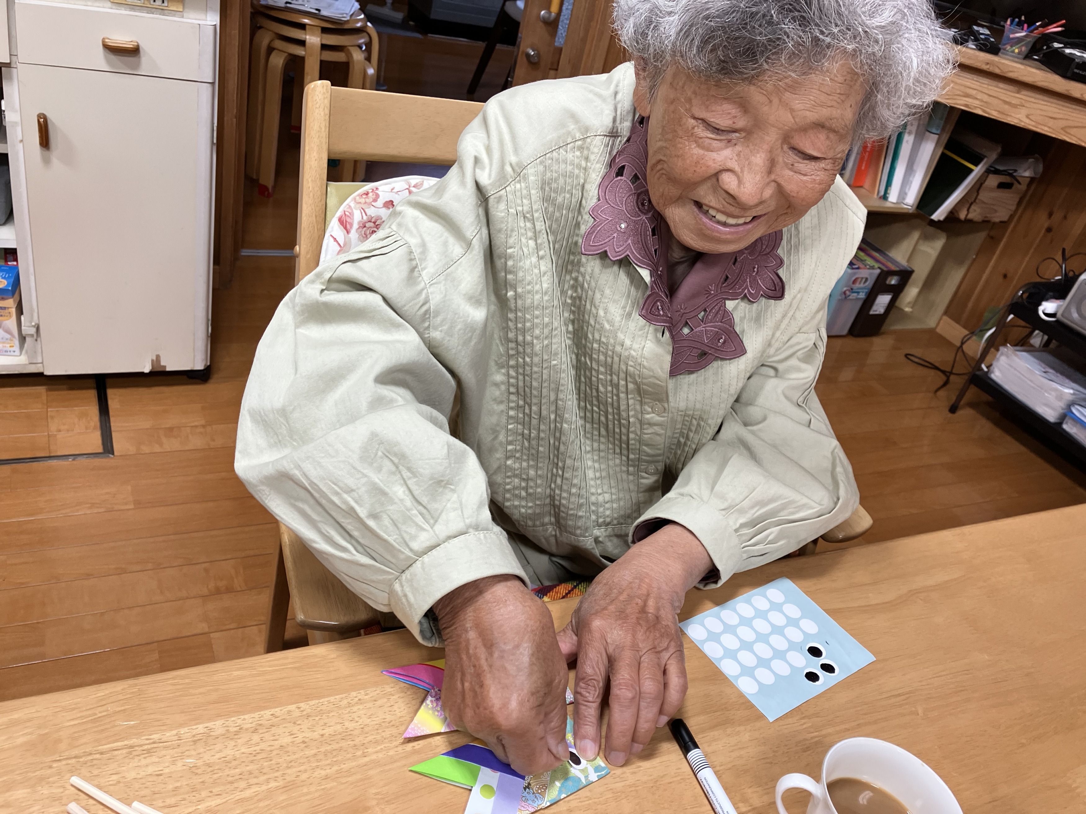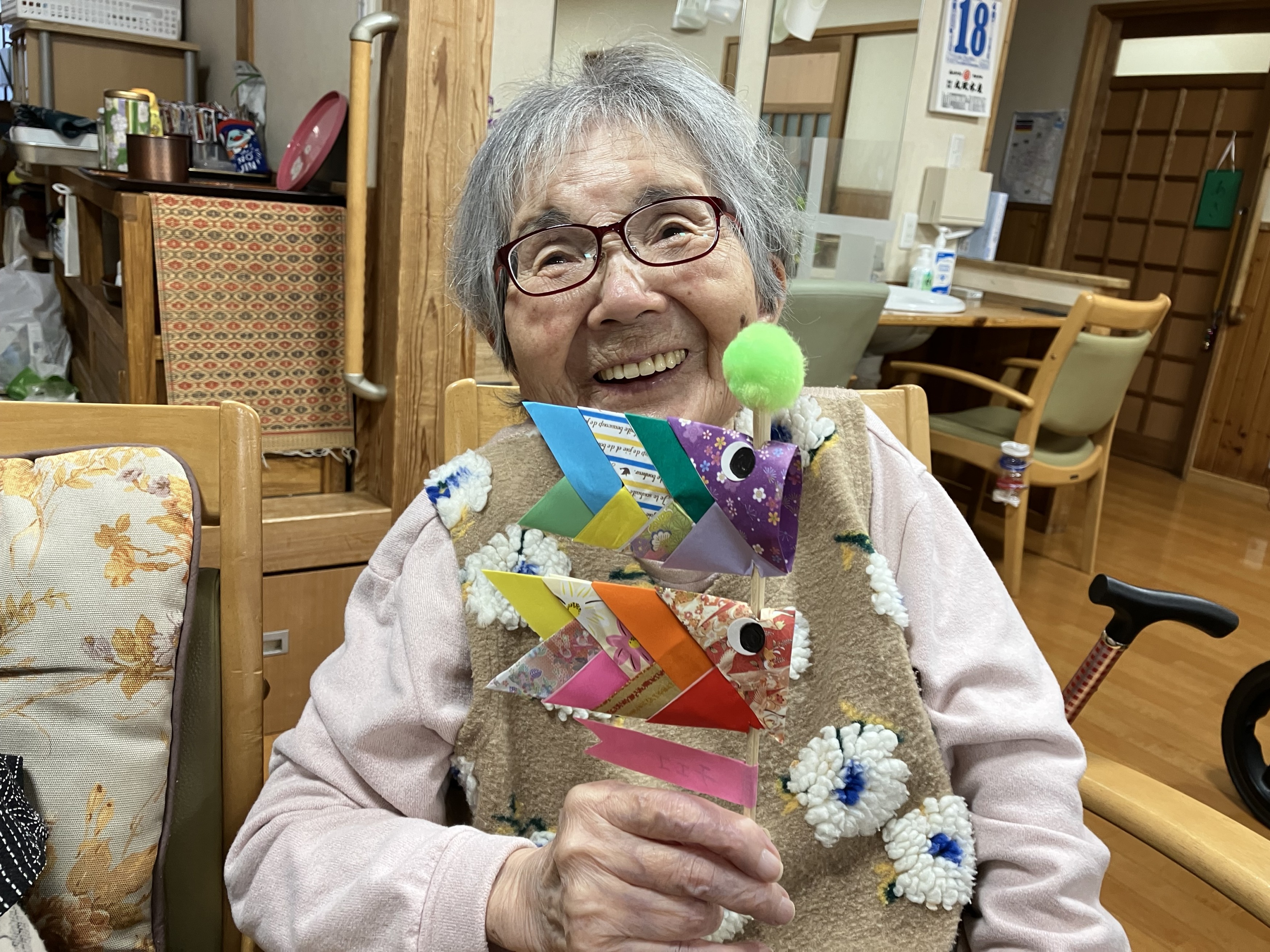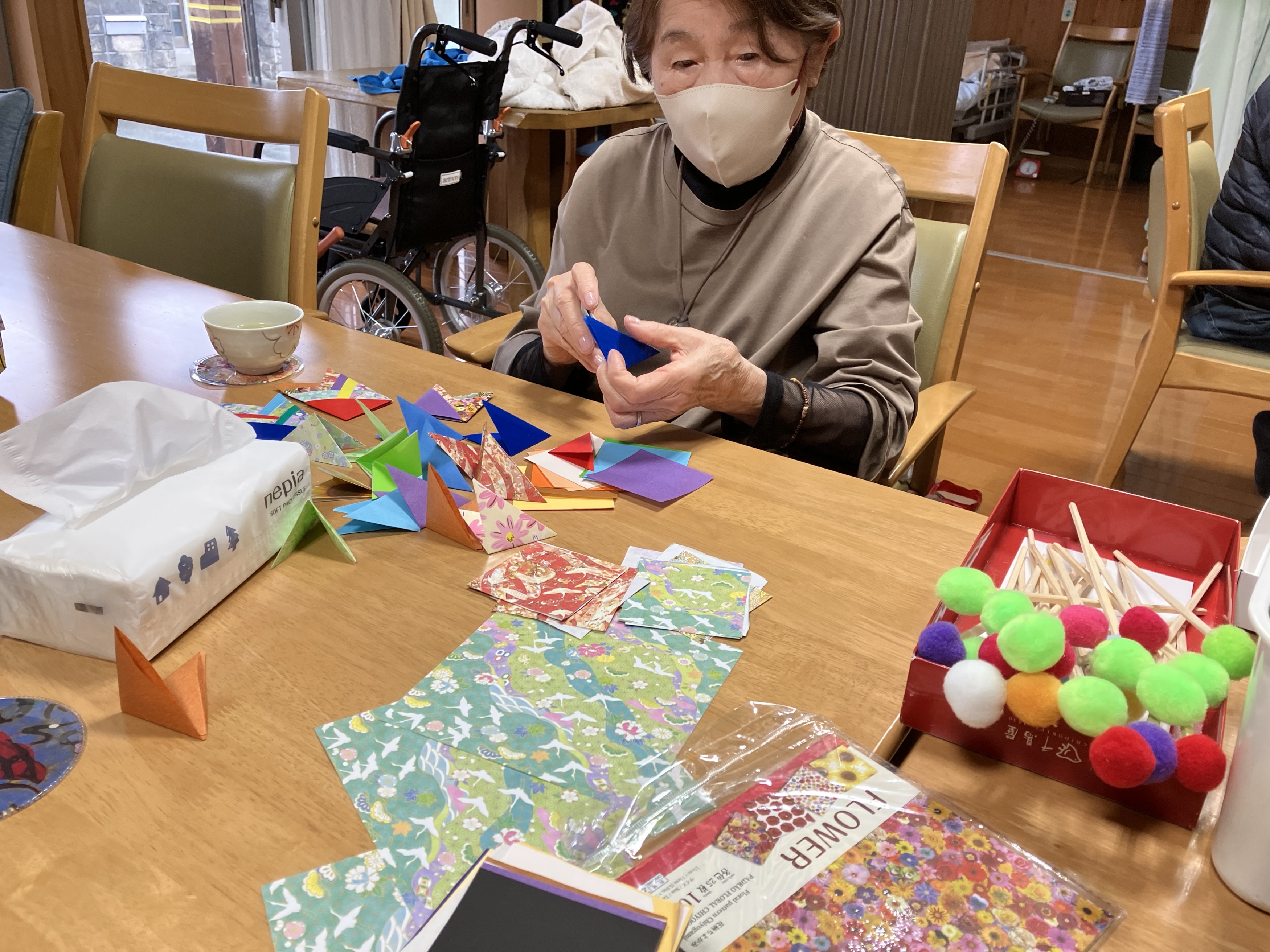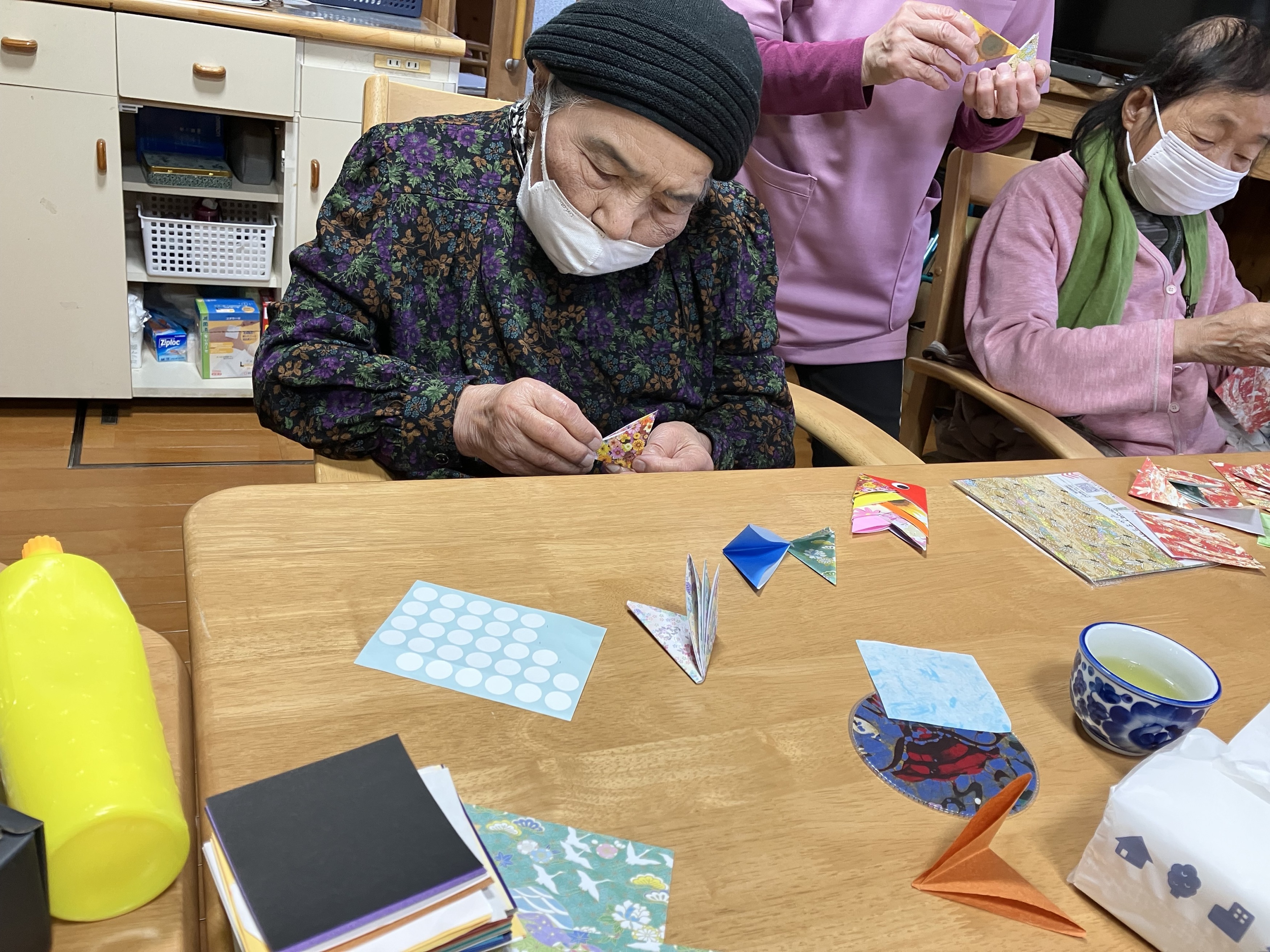 色とりどりの折り紙が重なり合い、とても可愛らしい作品に仕上がっています(#^.^#)