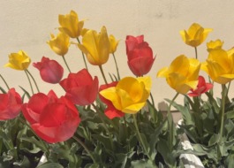 陽春、桜の後の花形が咲き始め、他の花々も可愛いらしく並んで咲き、気持ちのいい風が吹き抜けます。