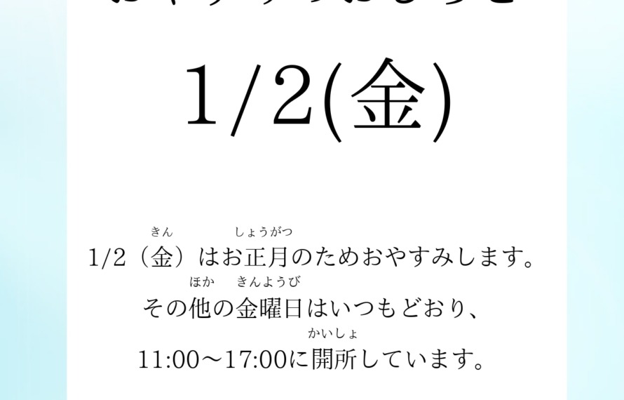 1月2日(金)おやすみのおしらせ