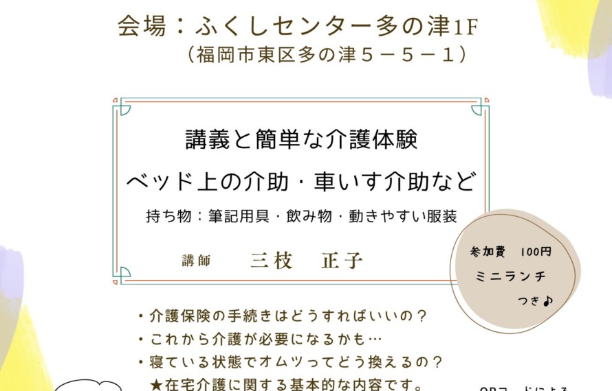 11/23(土)家庭の介護教室への参加を募集してます(^^♪