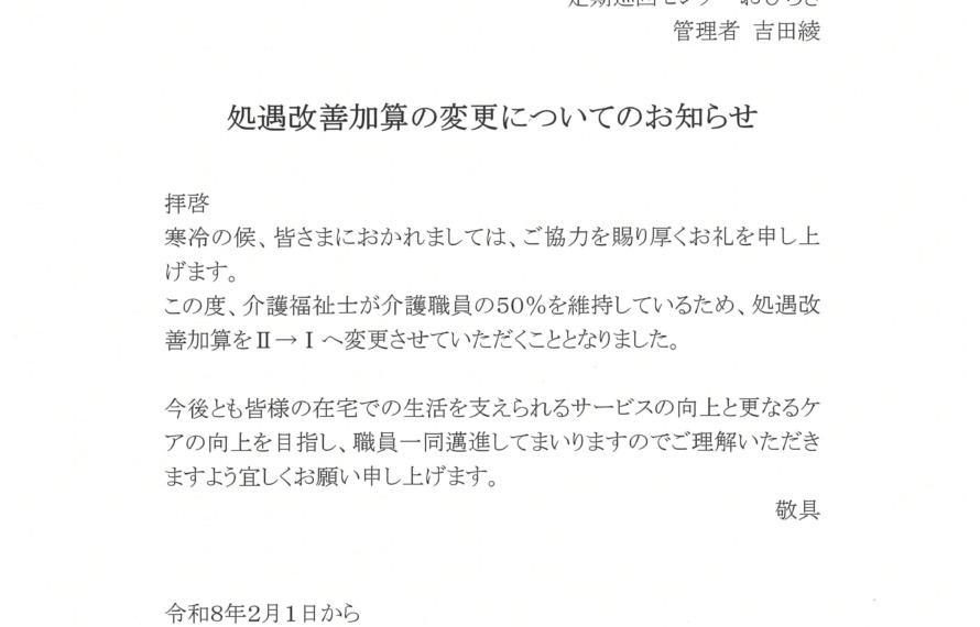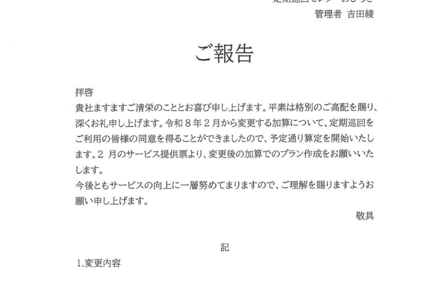 ● デイサービスの送り出し現在調理は行っておりませんが、おひらき厨房