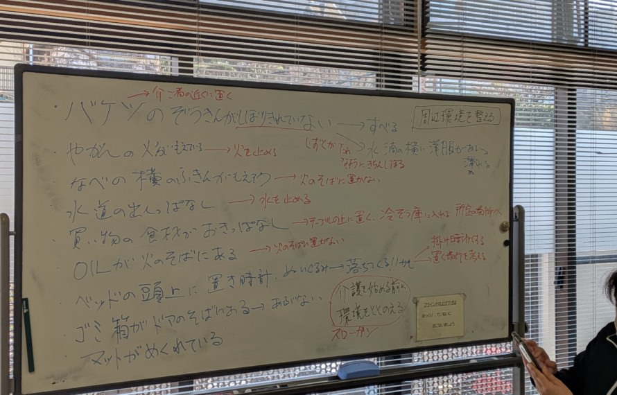 えくぼ業務会議で、「安全確認トレーニング」の研修を行いました。