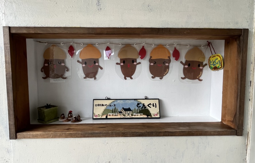 どんぐりとはブナ科、クヌギ、ナラ、カシなどの実を総称して「どんぐり」といいます。たくさんの人との出会いをめざし、仲間と支え合いながら、介護の仕事、子育て応援などに取り組んでいます。