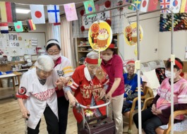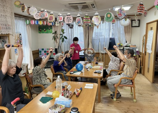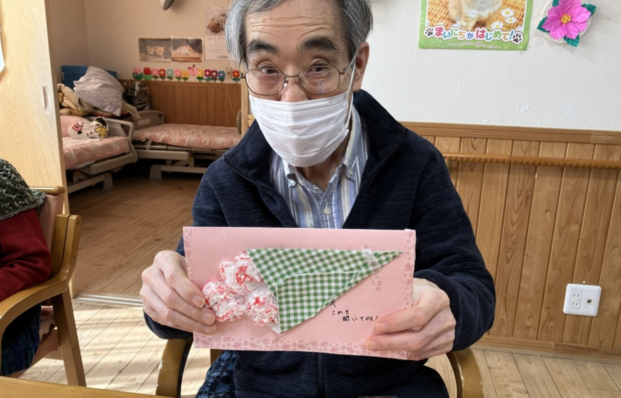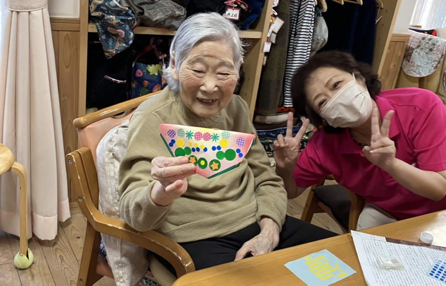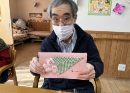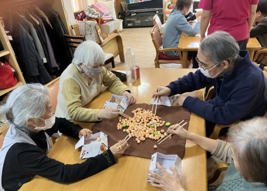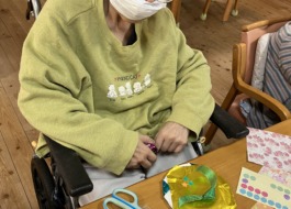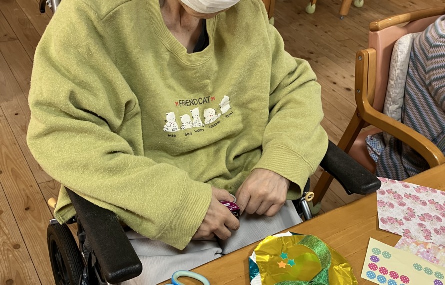 折り紙で季節の物を作成したり、カードゲームやディスクカーリング、パットゴルフなど日々違ったレクリエーションを全員で楽しみます。