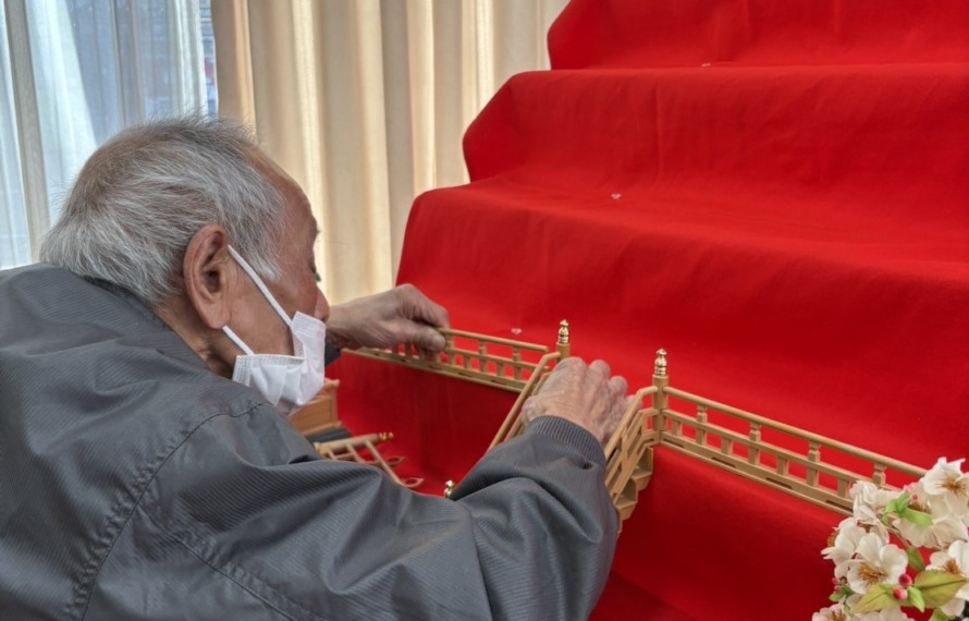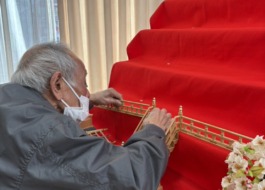 来月に向けて、利用者さんとお雛様の飾りつけをしました。